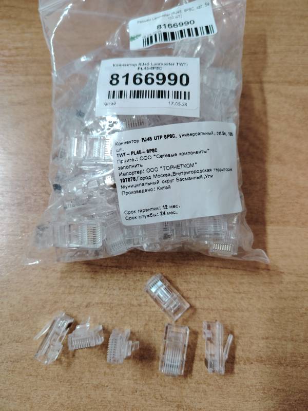 Коннектор RJ45 Lanmaster TWT-PL45-8P8C имеет 8 контактов и соответствуют требованиям категории 5e, что обеспечит высокую производительность, стабильную работу и передачу сигнала без помех и искажений. Сам корпус выполнен из пластика, устойчивого к различным внешним воздействиям. Комплект поставки включает в себя 100 коннекторов.