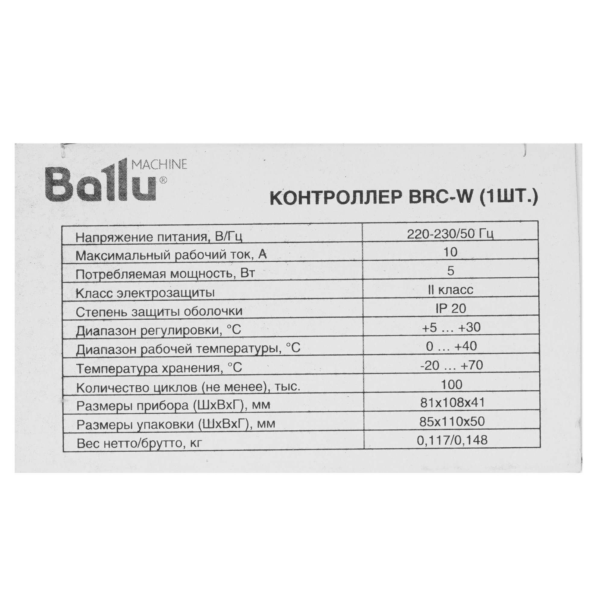 Контроллер пульт Ballu BRC-W