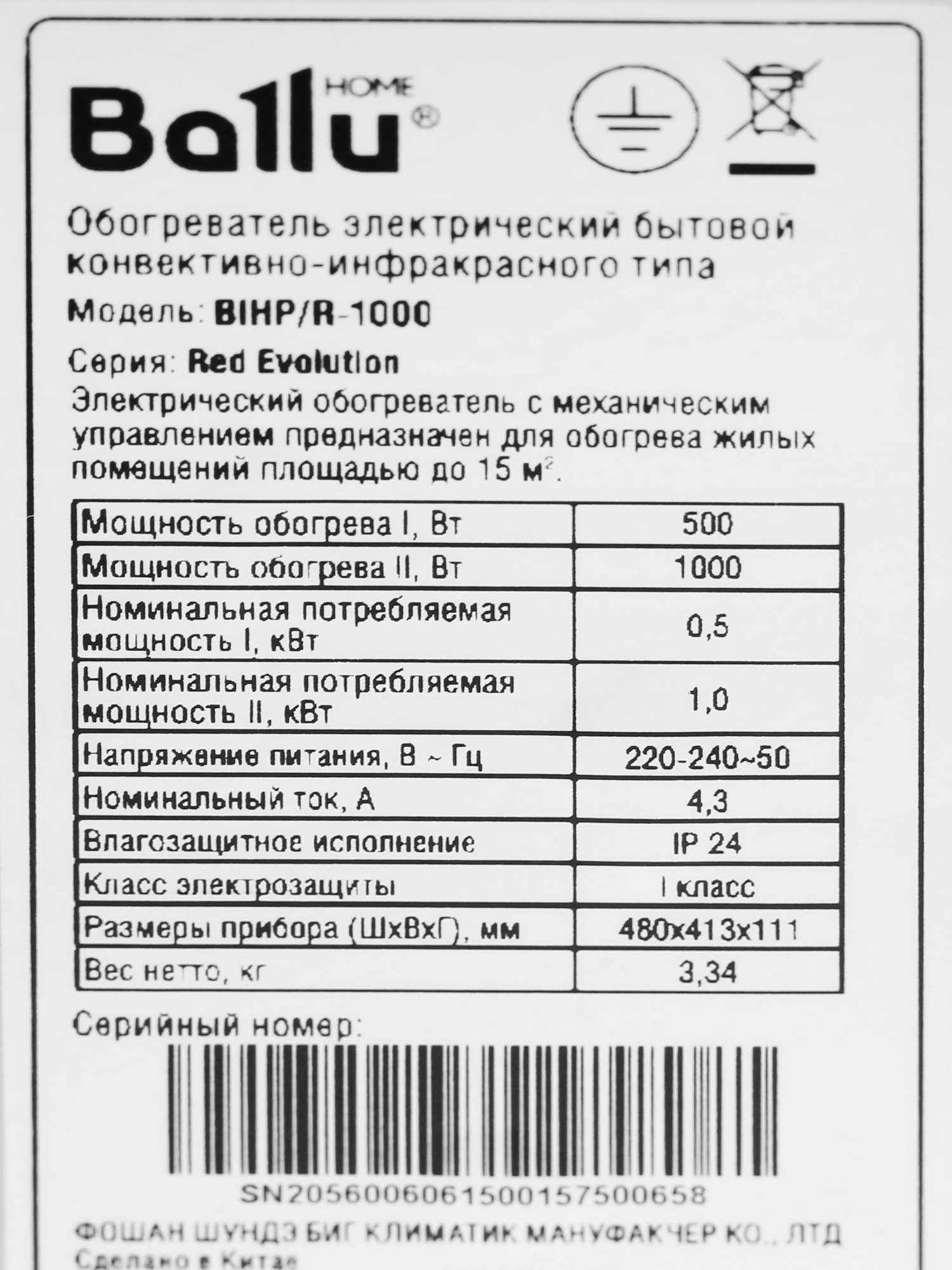 Полная мощность Ballu BIHP/R-1000 - 1000 Вт, есть половинный режим экономии - 500 Вт. Из розетки при включении берется напряжение 220 Вольт и тока в 4.3 А. Обогреватель имеет первый класс электрозащиты и степень пылевлагозащиты IP24. Также конвективно-инфракрасный обогреватель Ballu BIHP/R-1000 оснащен защитой от перегрева, благодаря которой обогреватель прослужит наиболее долгий срок. Инфракрасный обогрев экологичен, в помещении создается направленный тепловой поток, постепенно заполняющий все пространство.