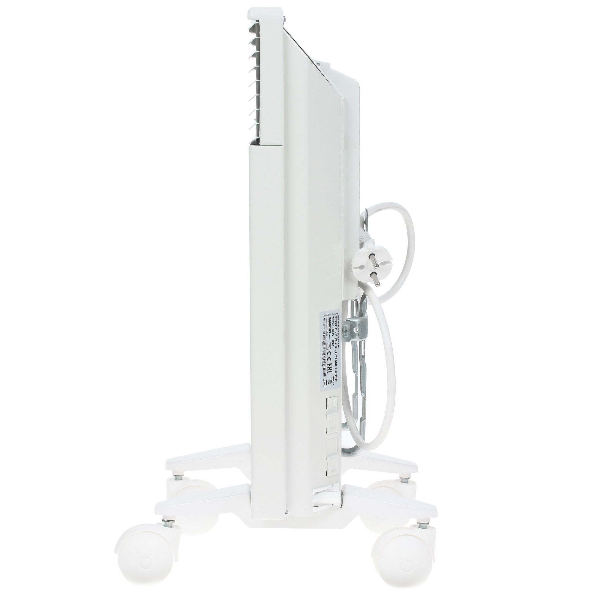 Конвектор Noirot Spot E 3 750 Plus представлен в напольном дизайне с белоснежной расцветкой корпуса и может быть монтирован на стену в целях экономии свободного пространства. Оборудование оснащено электронным термостатом, позволяющим регулировать уровень нагрева и мощности до 750 Вт. Устройство весит 2.8 кг, обладает габаритами 34х44х8 см, обладает двумя рабочими режимами и надежной системой защиты от перегрева.