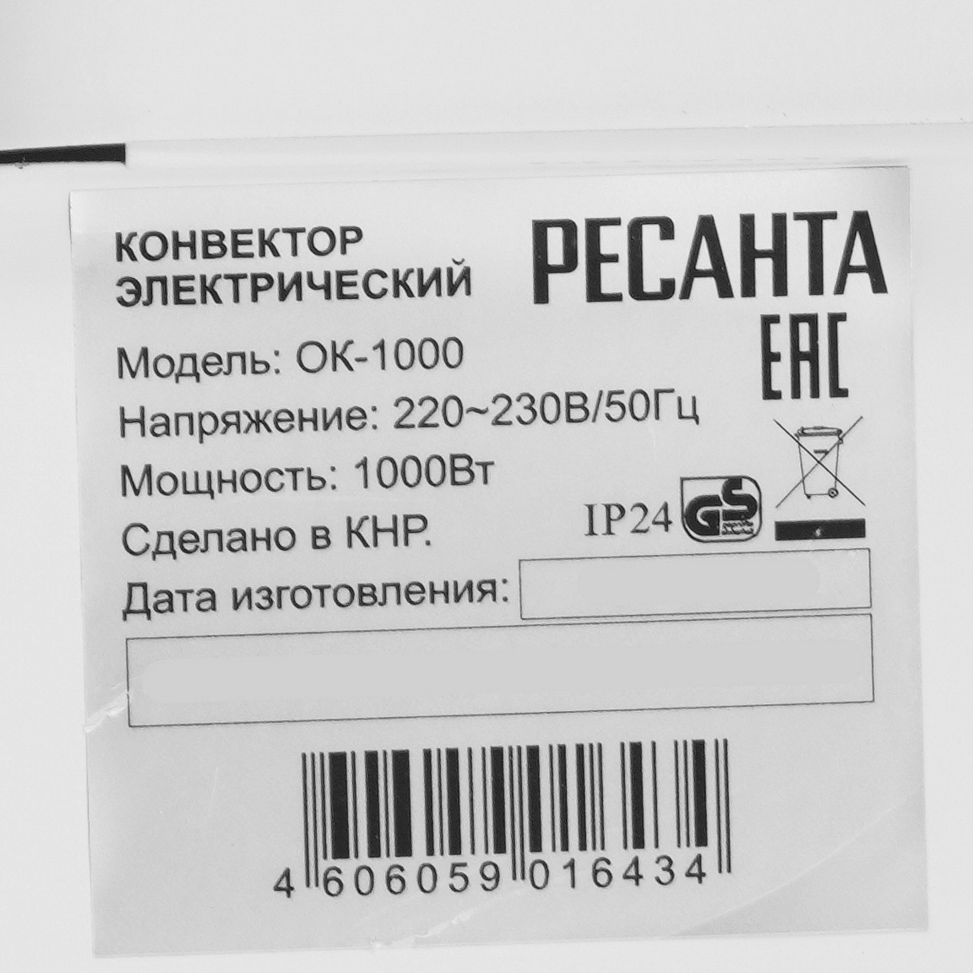 Конвектор Ресанта ОК-1000 белый, 1000 Вт, 15 м2, термостат