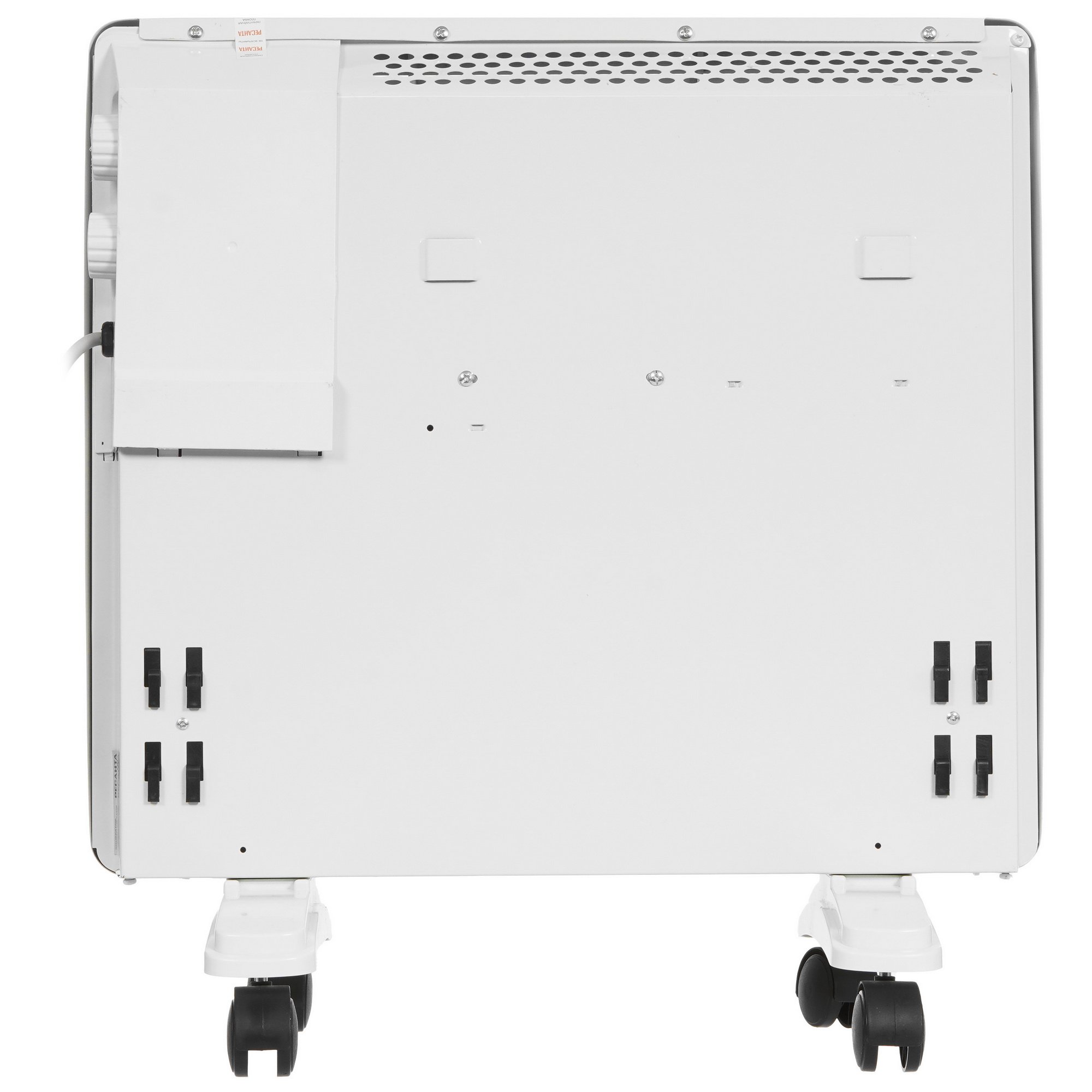 Выполнен конвектор Ресанта ОК-1000 в белом цвете. Он обладает простым дизайном, способен вписаться в интерьер. Установка может осуществляться на полу. Есть крепления для монтажа на стене. Удается сэкономить пространство в помещении, изделие не займет много места.