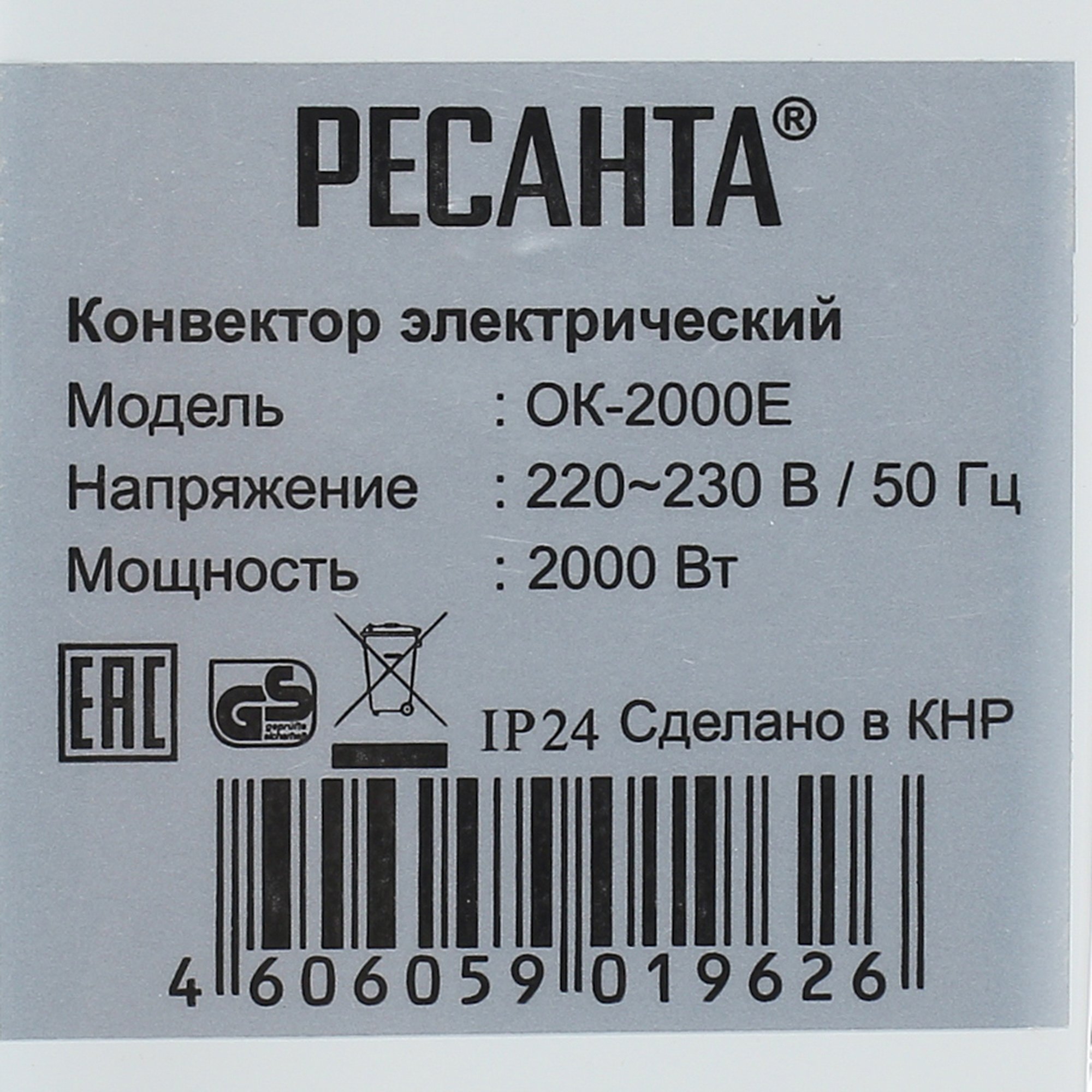 Прибор Ресанта ОК-2000Е дополнен небольшим кабелем на 1.6 м и колесами. На корпусе имеется небольшой дисплей для контролирования рабочего процесса. Устройство дополнено эффективной защитой от мороза и перегрева, а также автоматически отключается при случайном опрокидывании корпуса. Система весит 5.8 кг и имеет размеры 82x50x12 см.