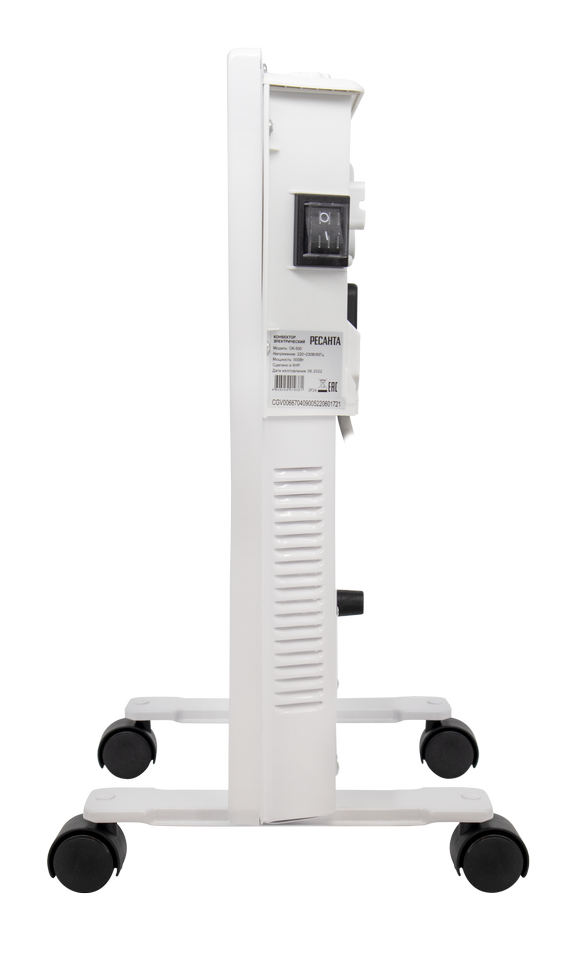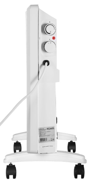 Конвектор Ресанта ОК-500 в тонком белом корпусе может быть смонтирован как на колесной подставке, удобной для перемещения прибора, так и на стенном кронштейне. Расходуя на протяжении часа не более 500 Вт электроэнергии, прибор создает в холода комфортную для людей температуру на площади 5 м², этого достаточно для обогрева торгового объекта, служебного помещения или небольшой комнаты. Защищенный по стандарту IP24 конвектор автоматически отключается при перегреве, благодаря чему отличается безопасностью эксплуатации.