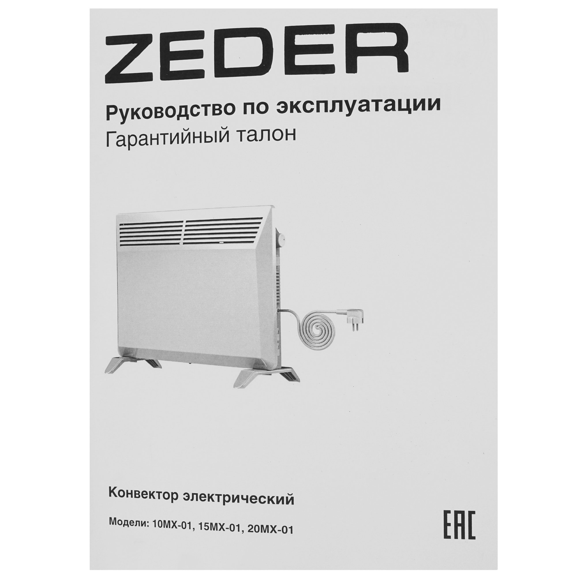 Конвектор Zeder 20MX-01 может обслуживать площадь до 25 м² благодаря мощности 2000 Вт. Установка температуры нагрева осуществляется через механический термостат. Монолитный нагревательный элемент не пересушивает воздух и не сжигает пыль в помещении.