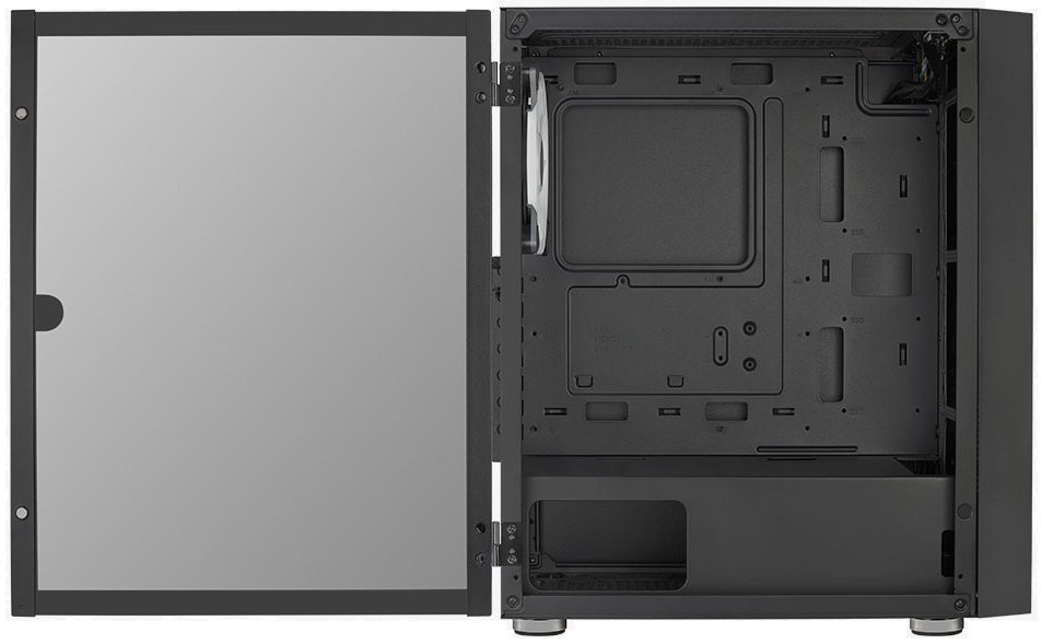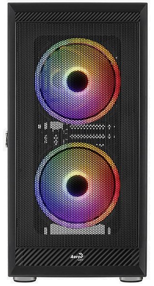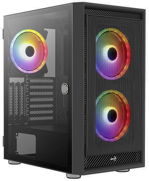 Благодаря конструкции передней панели с сетчатой решёткой улучшается вентиляция корпуса AeroCool Graphite и легко можно рассмотреть стильную LED-подсветку 140 мм FRGB вентиляторов. Прозрачная боковая панель из закалённого стекла оборудована удобным механизмом с петлями и ручкой, что позволяет без проблем открывать корпус и видеть все его компоненты «за работой». Три дополнительных слота расширения позволяют вертикальную установку видеокарты.