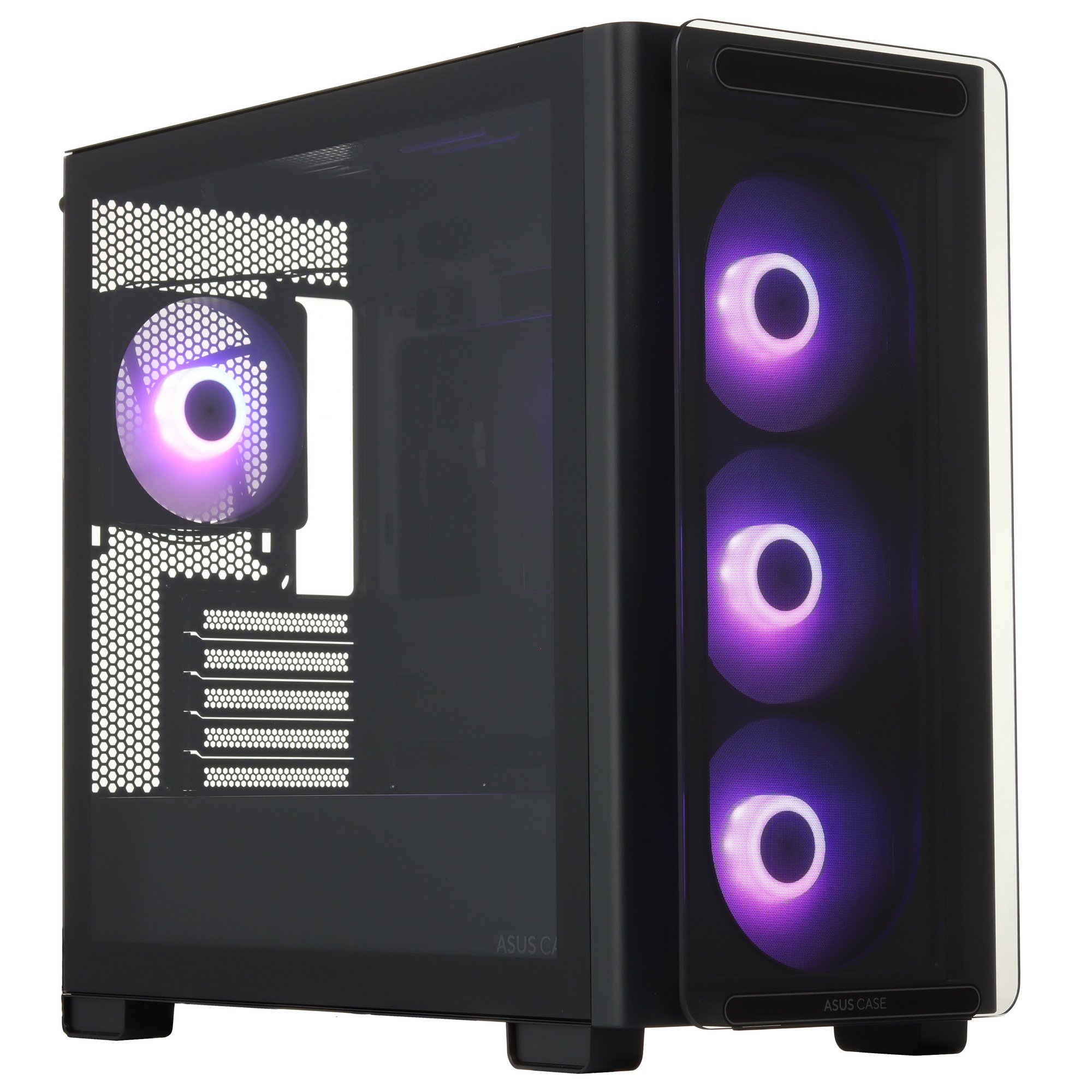 Корпус ASUS A23 PLUS [90DC00K0-B19010] с дизайном в черном цвете рассчитан на сборку компактного игрового или универсального компьютера. В модели реализованы фронтальная панель и боковое окно из обладающего повышенной стойкостью к появлению царапин закаленного стекла. За материнской платой есть пространство шириной 33 мм для размещения кабелей. Отвод тепла производят 4 вентилятора типоразмера 120 мм с подсветкой ARGB, преимуществом которой является возможность одновременного отображения нескольких цветов. Внешние порты USB 3.2 Gen 1 Type-A и USB 3.2 Gen 2 Type-C упрощают подключение накопителей и другой техники.
