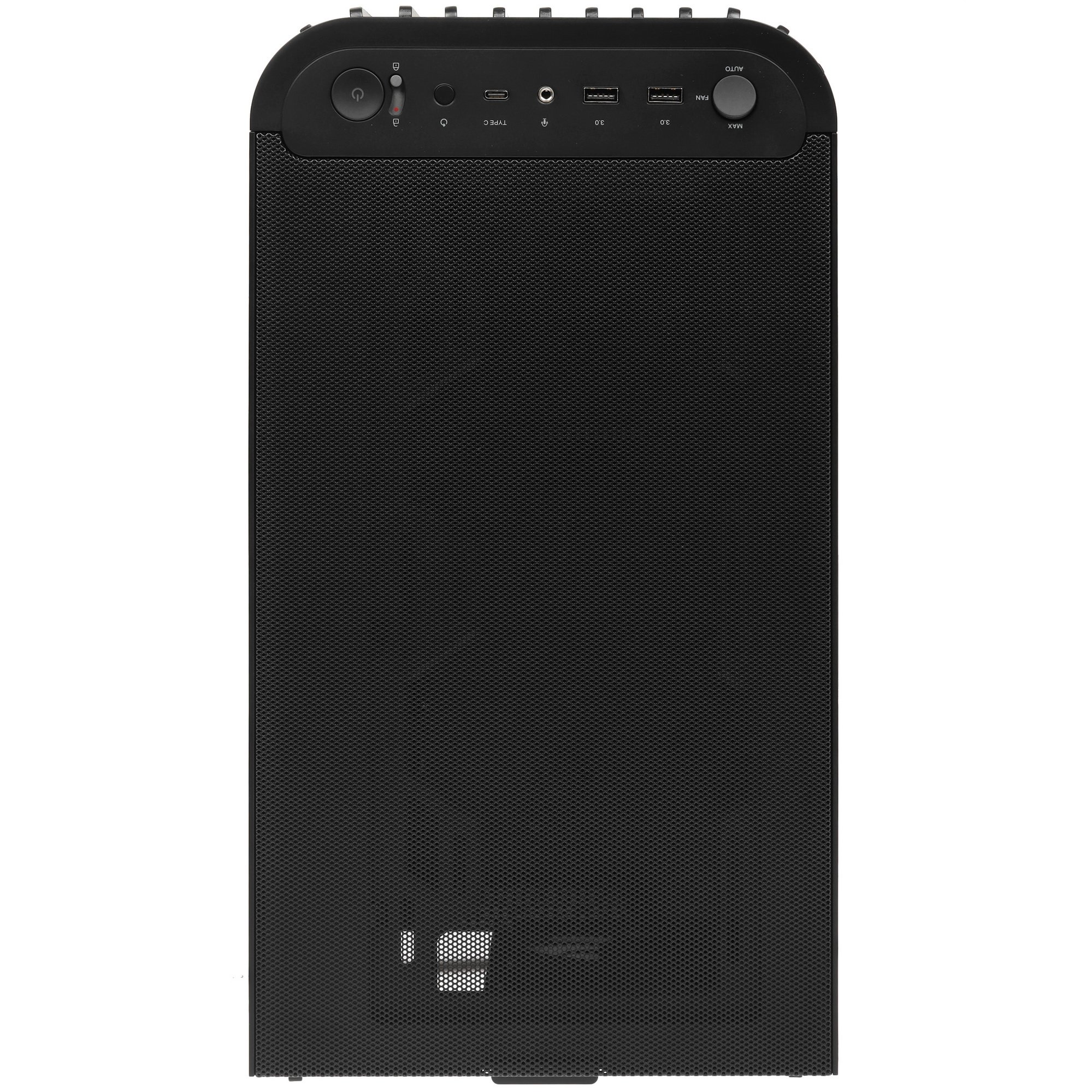Фронтальная панель разъёмов корпуса включает два порта USB Type-A (5 Гбит/с), один порт USB Type-C (20 Гбит/с), а также комбинированный 3,5-мм аудиоразъём. Также имеется специальная кнопка блокировки, предотвращающая случайное нажатие кнопок питания и перезагрузки ПК.