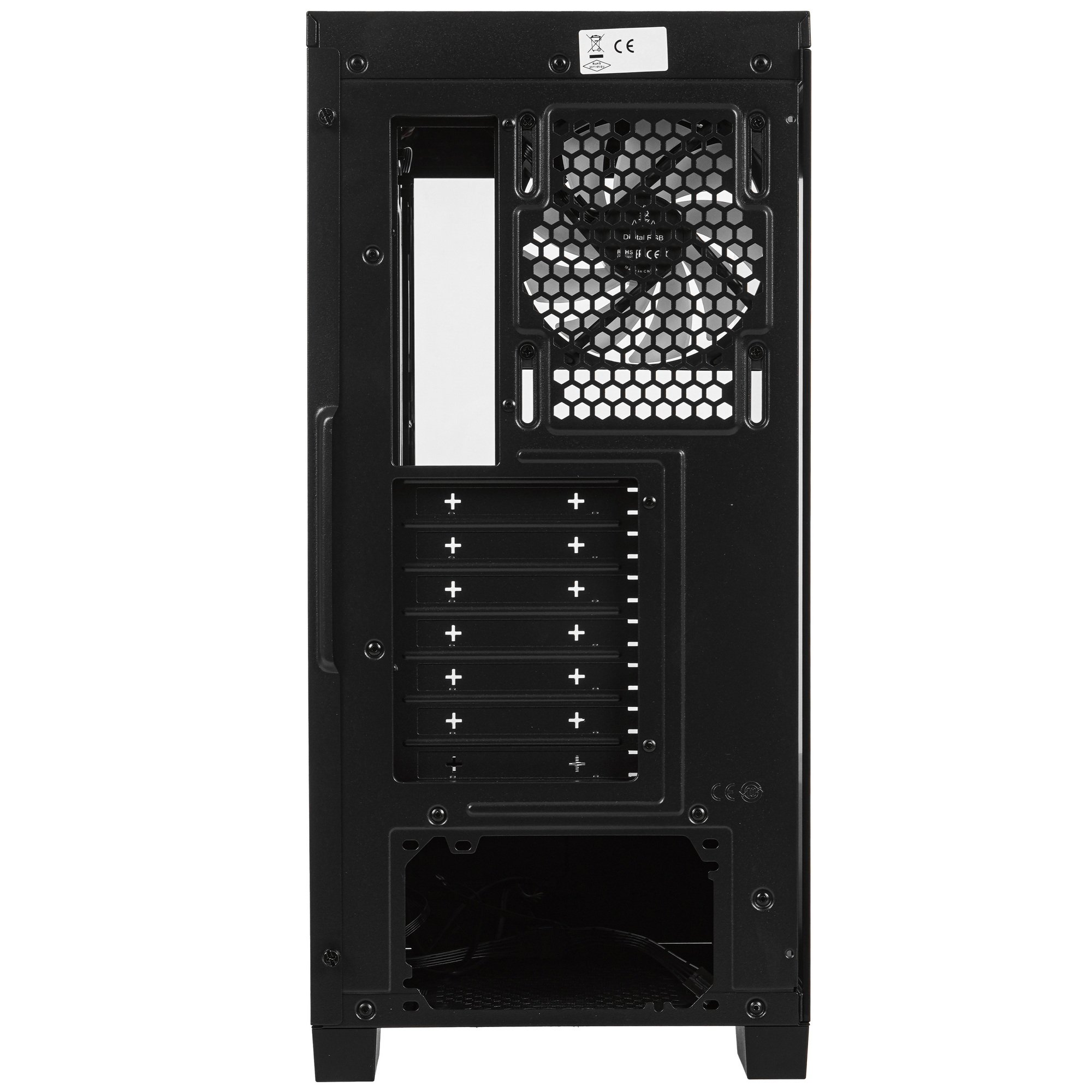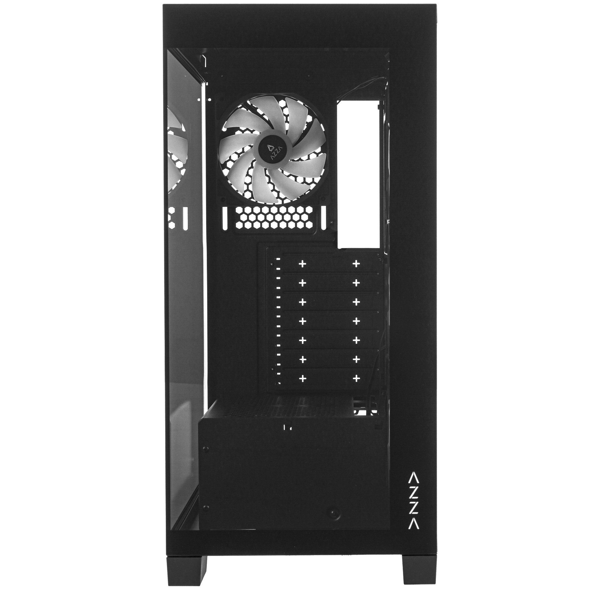 Корпус AZZA COVE форм-фактора Mid-Tower собран из стали, пластика и закаленного стекла. Боковые панели крепятся на защелки. Внутри можно расположить материнскую плату форм-фактора Micro-ATX, Mini-ITX, Standard-ATX, видеокарту длиной до 400 мм и блок питания типа ATX. Кабели внутри прокладываются вдоль стенок, чтобы внутри был порядок. О чистоте внутри корпуса AZZA COVE призван позаботиться пылевой фильтр.