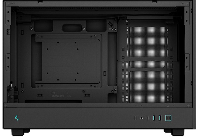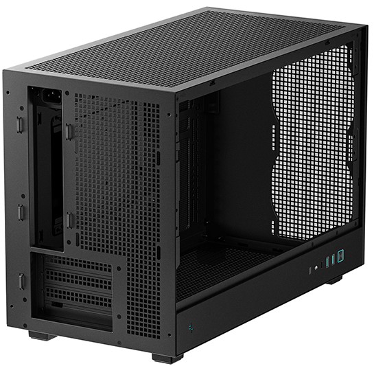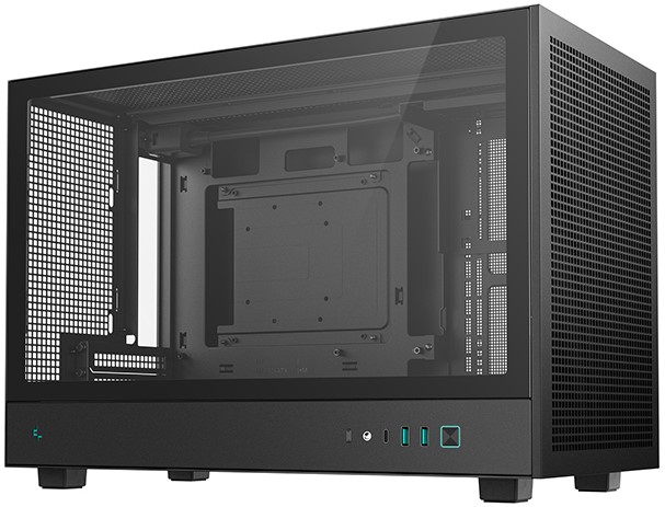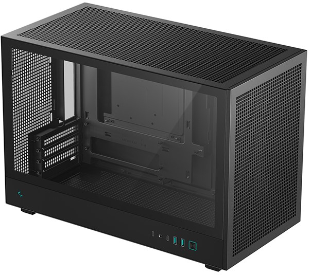 Корпус Deepcool CH260 представляет собой Mid-Tower корпус черного цвета. Он оснащен боковой панелью из закаленного стекла, что позволяет демонстрировать внутренние компоненты системы. На передней панели корпуса расположены два порта USB 3.2 Gen 1 и один порт Type-C для удобного подключения периферийных устройств. Корпус поставляется без блока питания, что дает пользователям возможность выбрать и установить блок питания в соответствии с их потребностями и предпочтениями.