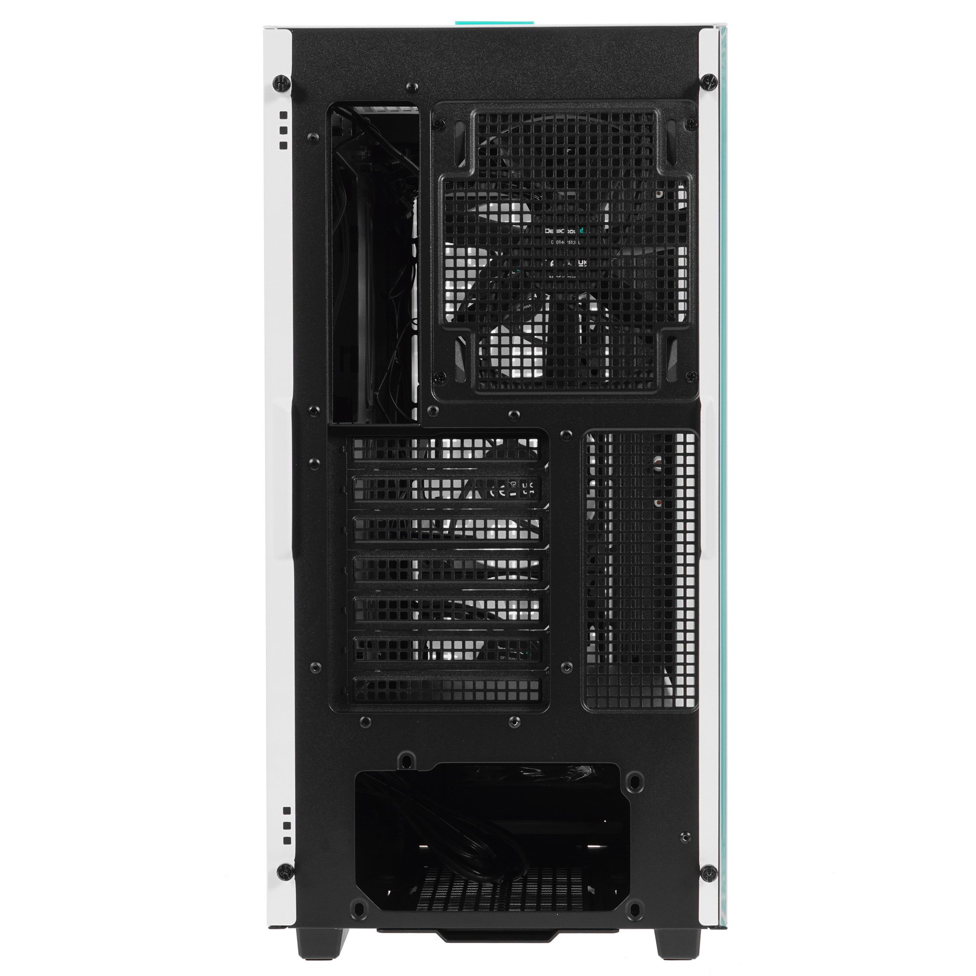 Корпус DEEPCOOL CK560 [R-CK560-WHAAE4-G-1] принадлежит форм-фактору Mid-Tower. Это указывает на возможность разместить внутри большое количество «офисных» и игровых компонентов. При этом корпус не занимает много места на столе или под ним. С его использованием владелец сможет собрать собственный компьютер, оснастив его материнской платой типа E-ATX, Micro-ATX, Mini-ITX или Standard-ATX. Блок питания «скрывается» внизу. В комплекте корпуса DEEPCOOL CK560 [R-CK560-WHAAE4-G-1] есть вентиляторы диаметром 12 и 14 см.