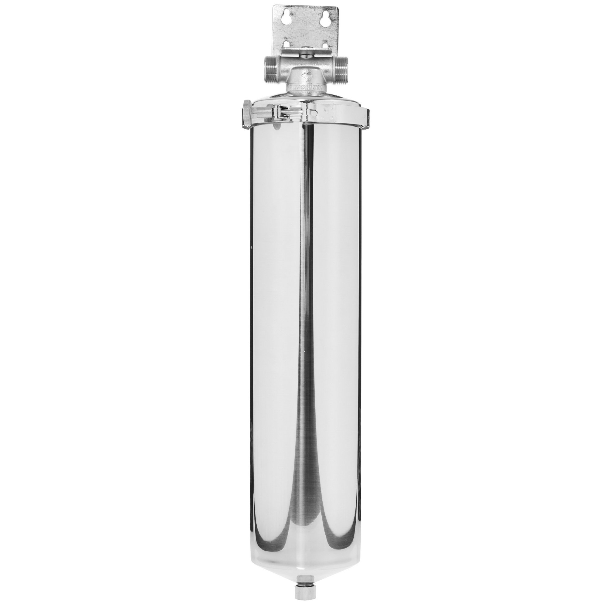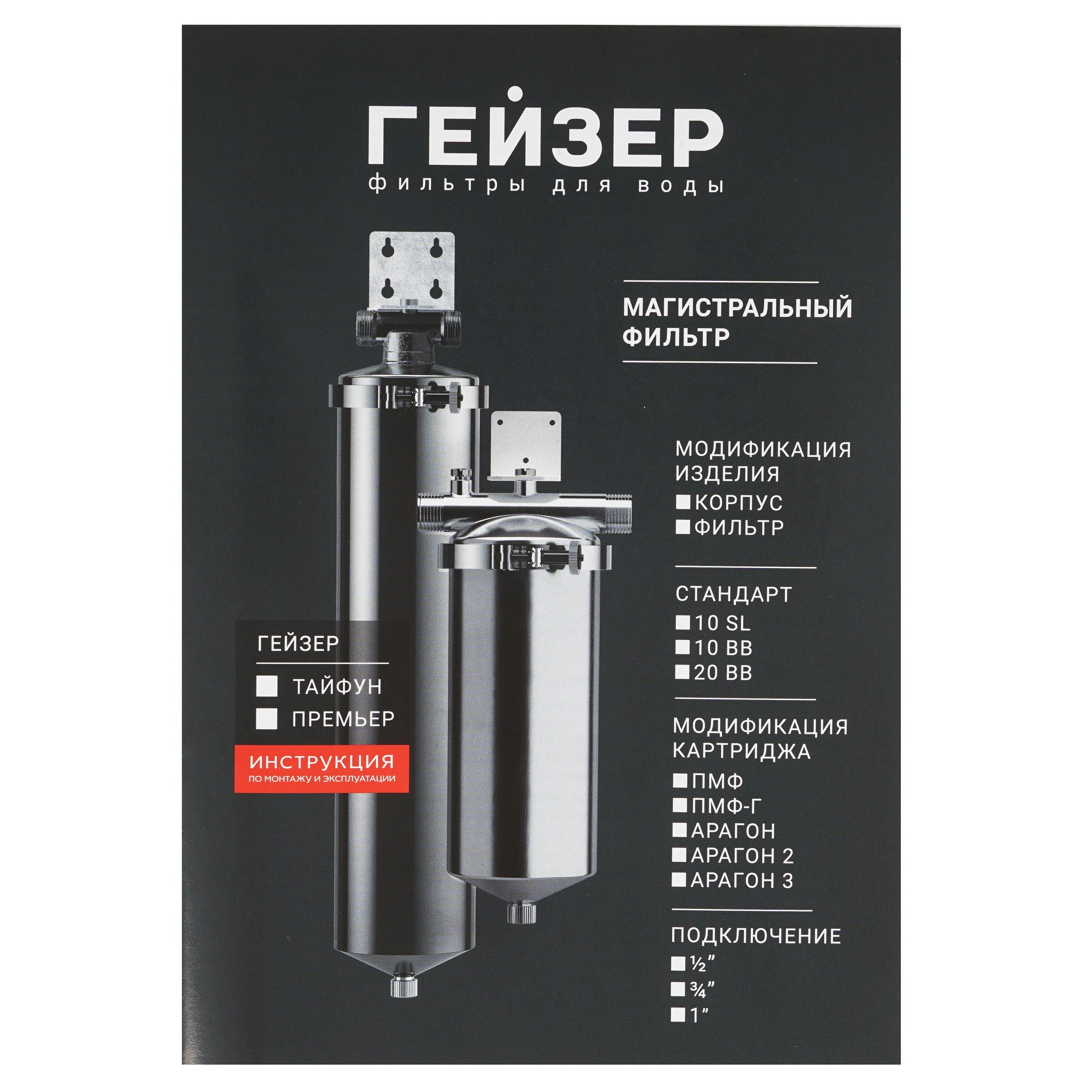 Корпус для магистрального фильтра Гейзер Премьер 20BB предусматривает размещение на входе в системе холодного или горячего водоснабжения с температурой в пределах 95 °С. Он рассчитан на установку картриджа фильтрации типоразмера Big Blue 20" и работу с давлением в пределах 8 Бар. Соединение с трубопроводом выполняется с помощью двух резьбовых входов диаметром 1 дюйм. Для изготовления корпуса Гейзер Премьер 20BB применена нержавеющая сталь марки 304L, что гарантирует устойчивость к повреждениям и образованию коррозии.