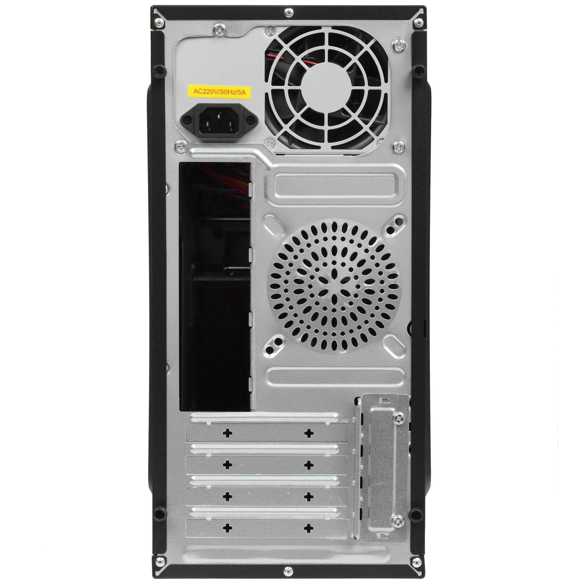 Корпус оснащен 500-ваттным БП. Мощность источника питания достаточна для стабильного функционирования процессора с несколькими ядрами, видеокарты с невысоким энергопотреблением, множества накопителей, плат расширения и других устройств. Вентиляторы в оснащение корпуса не входят, но возможность их установки есть – 1 сзади и 1 сбоку.