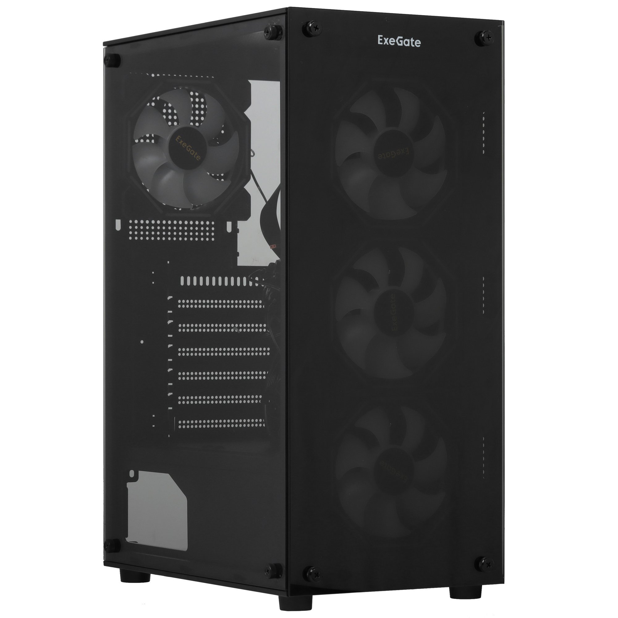 Компьютерный корпус Miditower ExeGate i3 BASE (ATX, без БП, с окном, 1*USB+1*USB 3.0, аудио, 4 вент. 12см с RGb подсветкой)