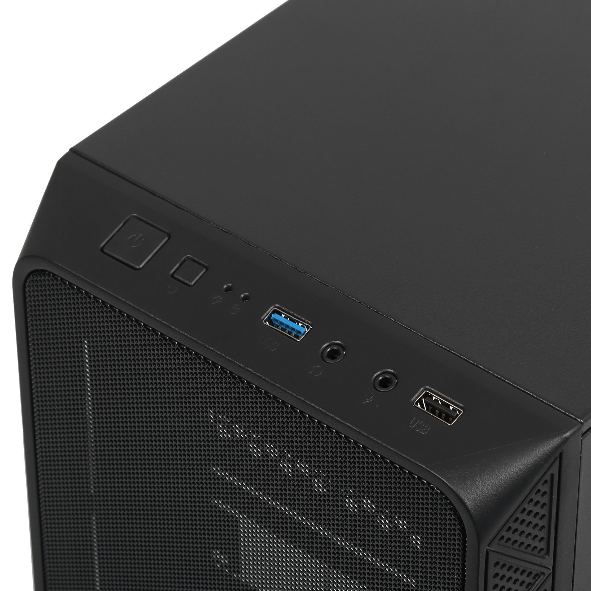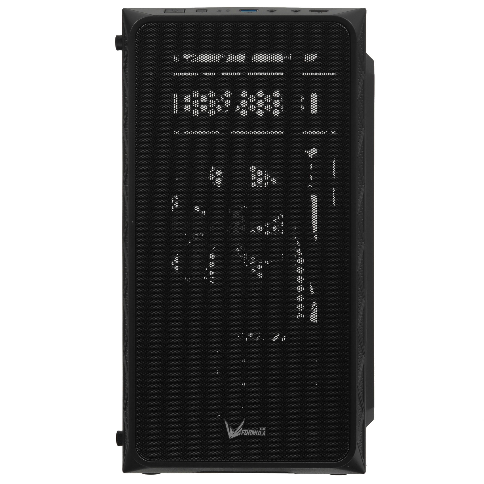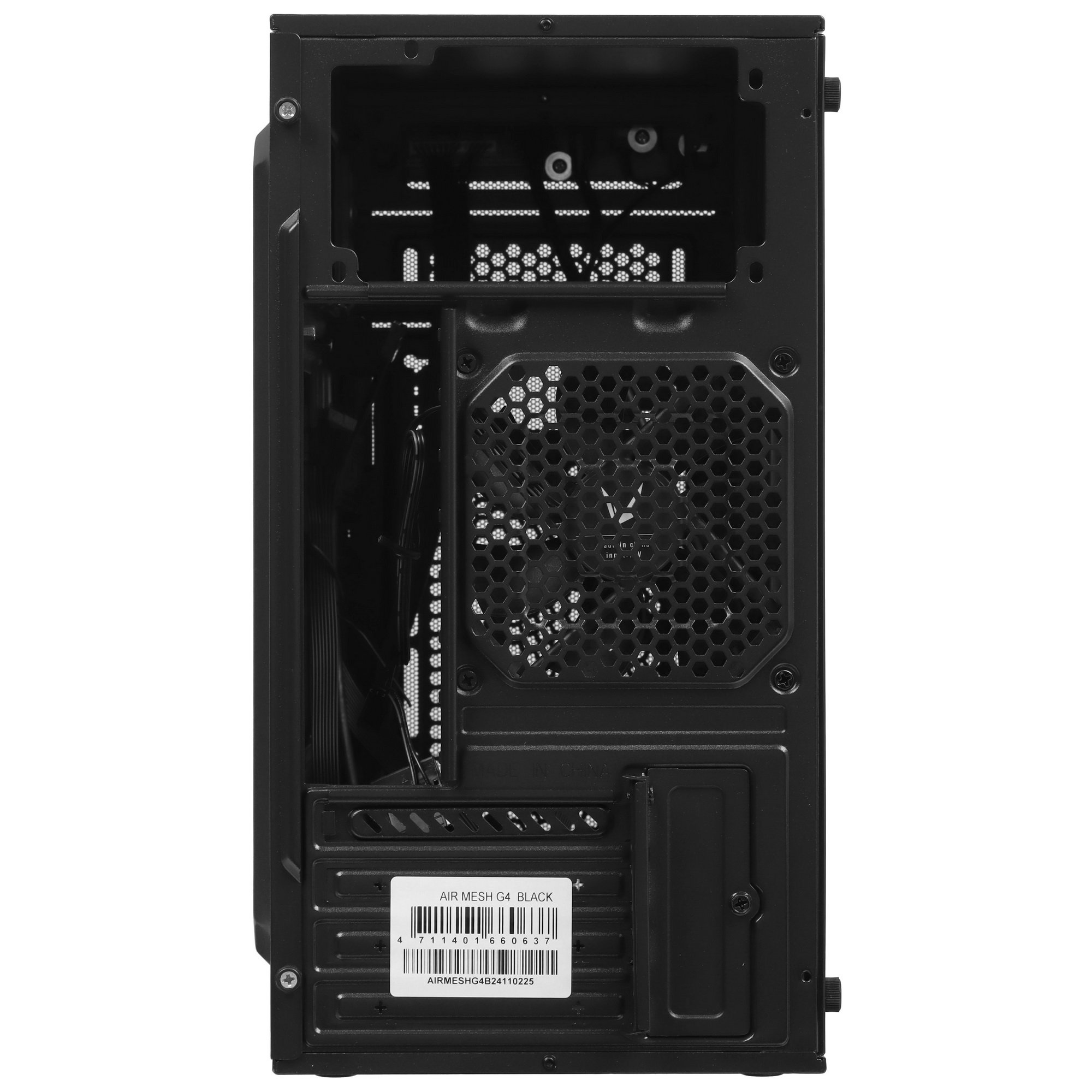 Корпус Formula Air Mesh G4 [AIR MESH G4 B] черного цвета с боковым окном из акрила с повышенной стойкостью к ударам и сетчатой передней панелью – модель форм-фактора Mini-Tower для сборки компактного игрового или универсального компьютера. Устройство поставляется с тыловым вентилятором. 2 дополнительных устройства теплоотвода можно установить с фронтальной стороны. Источник питания в оснащение корпуса не входит. Пользователю потребуется БП форм-фактора ATX. 2 фронтальных порта USB упрощают подключение внешних накопителей, смартфонов и другой техники. Имеется кнопка перезагрузки. Специальный вырез позволяет устанавливать и демонтировать процессорный кулер с использованием бэкплейта при установленной материнской плате.