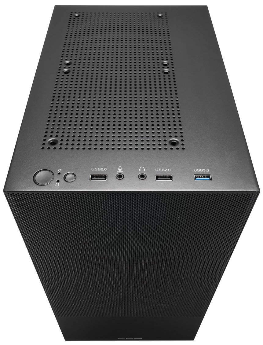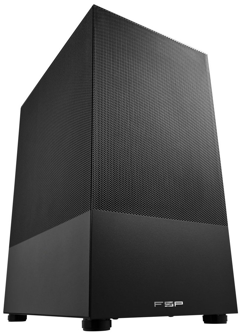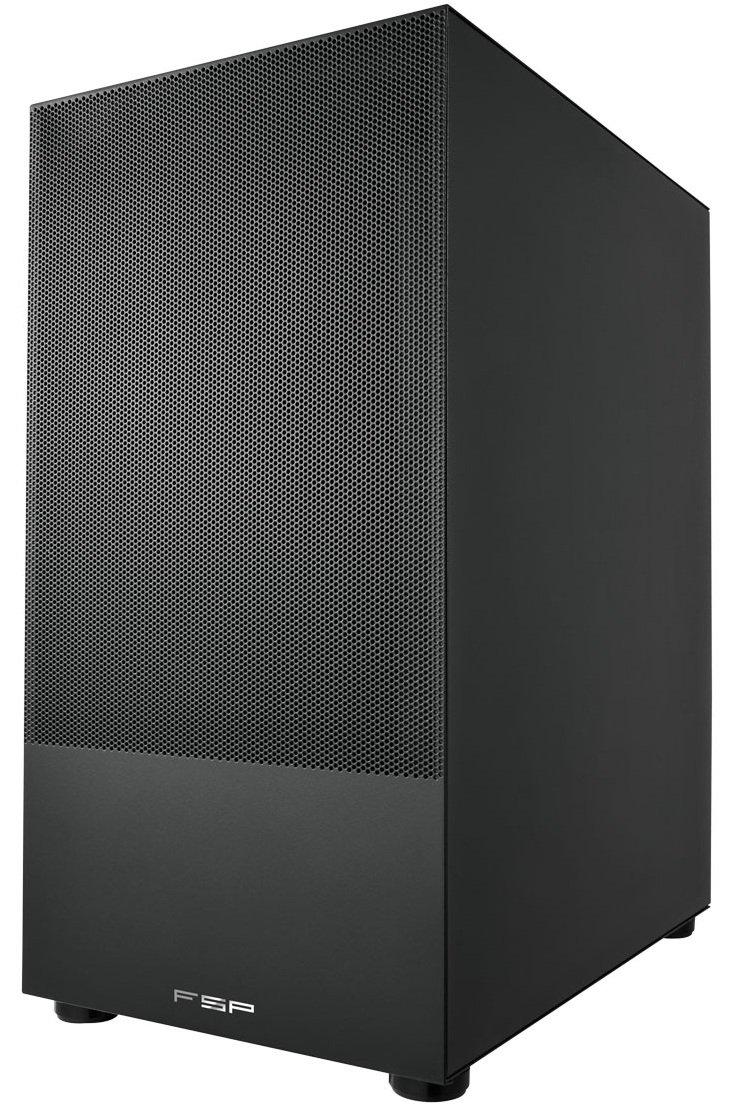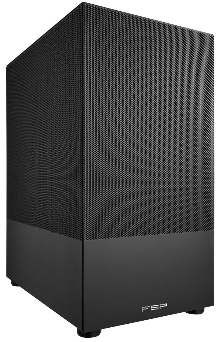 Корпус FSP S110-B представляет собой модель с цельной структурой и необычным дизайном. Он поддерживает материнские платы mini-ITX и microATX. Корпус выполнен в черном цвете и оснащен сетчатыми передней и боковой панелями.