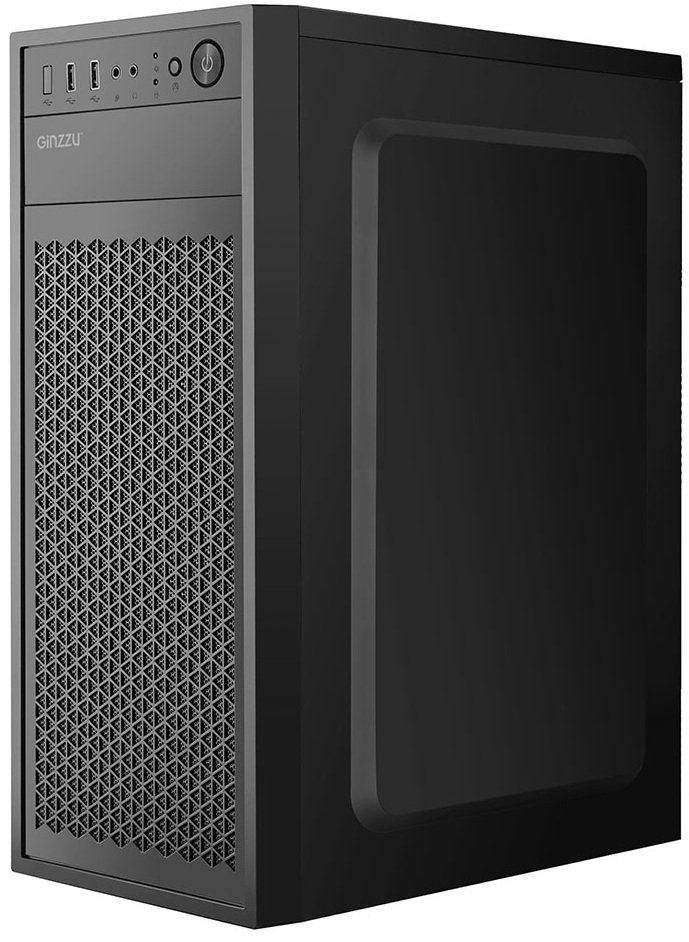 Корпус GiNZZU A400 классического черного цвета создан для того, чтобы объединить стандартную для офиса аппаратную конфигурацию. Он собран из пластика и стали толщиной 0.5 мм. Для накопителей HDD и SSD предусмотрено по 2 посадочных места. Панель включения и выключения у корпуса GiNZZU A400 располагается спереди. За счет стандартных интерфейсов USB к нему можно присоединить всю необходимую периферию. Лаконичный дизайн и простота использования – главные плюсы представленного устройства.
