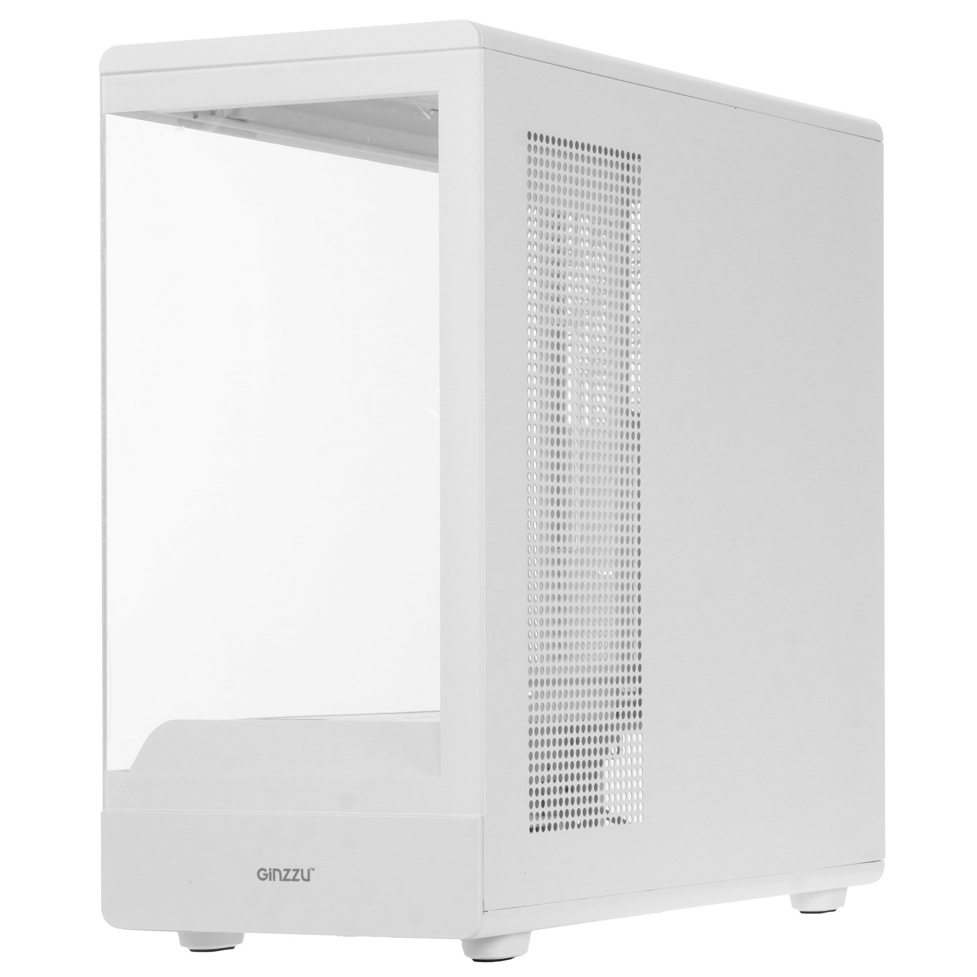 Компьютерный корпус Ginzzu GL 185 белый боковая дверца закаленное стекло на петлях на магнитах