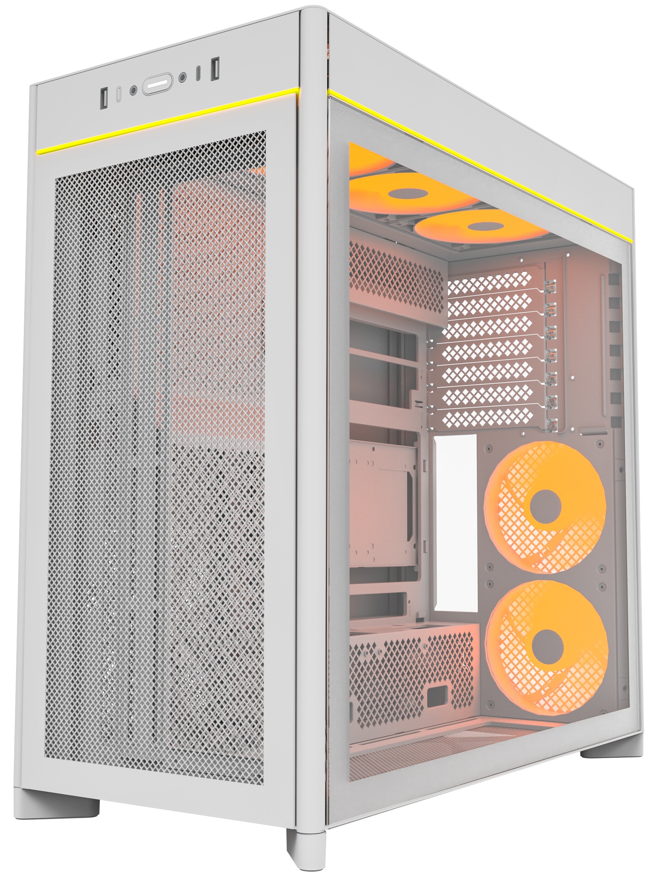 Интегрированная передняя панель в сочетании с регулируемым кронштейном переднего вентилятора создает целостную конструкцию, которая обеспечивает как надежную поддержку, так и гибкую производительность воздушного потока.
