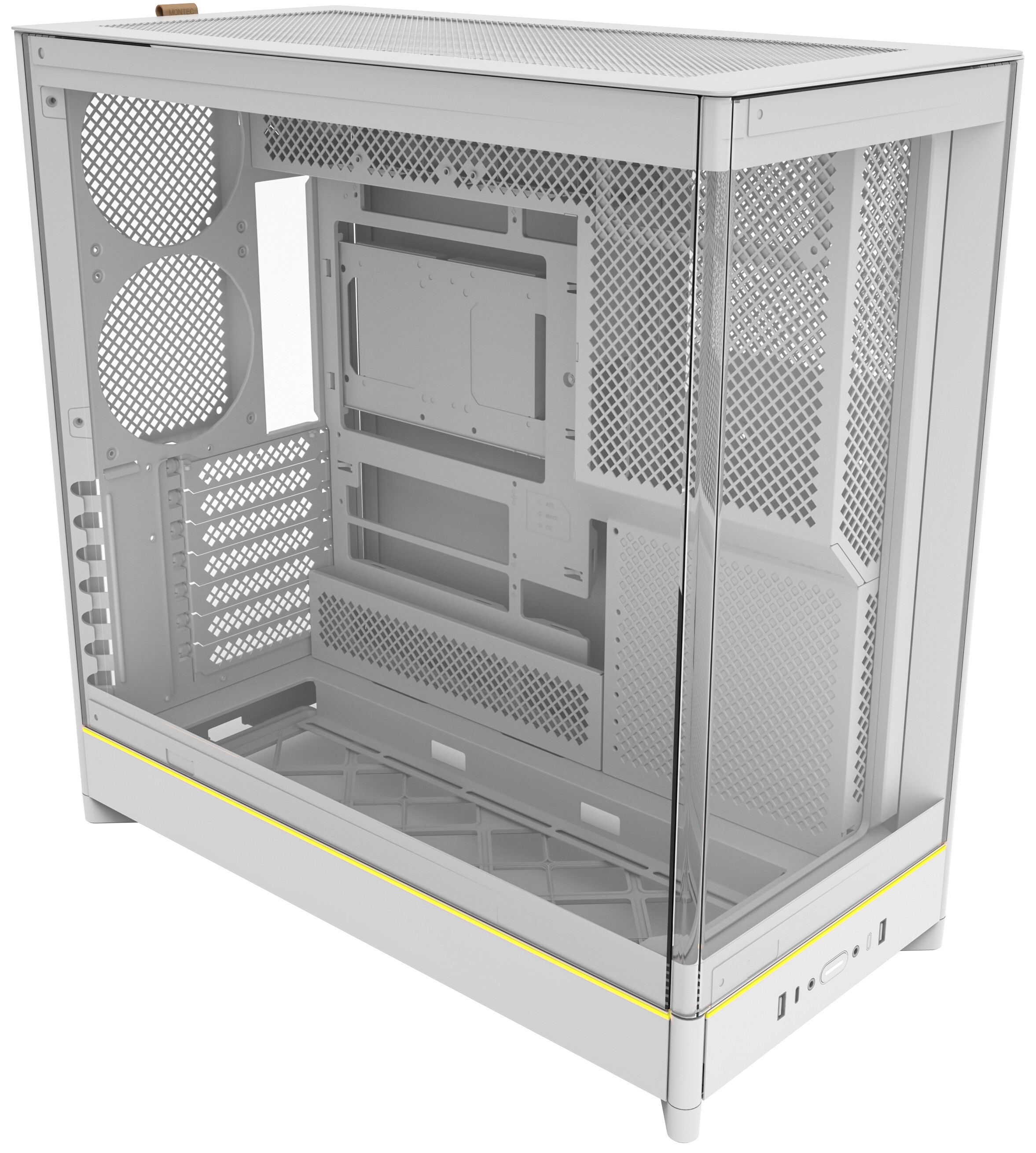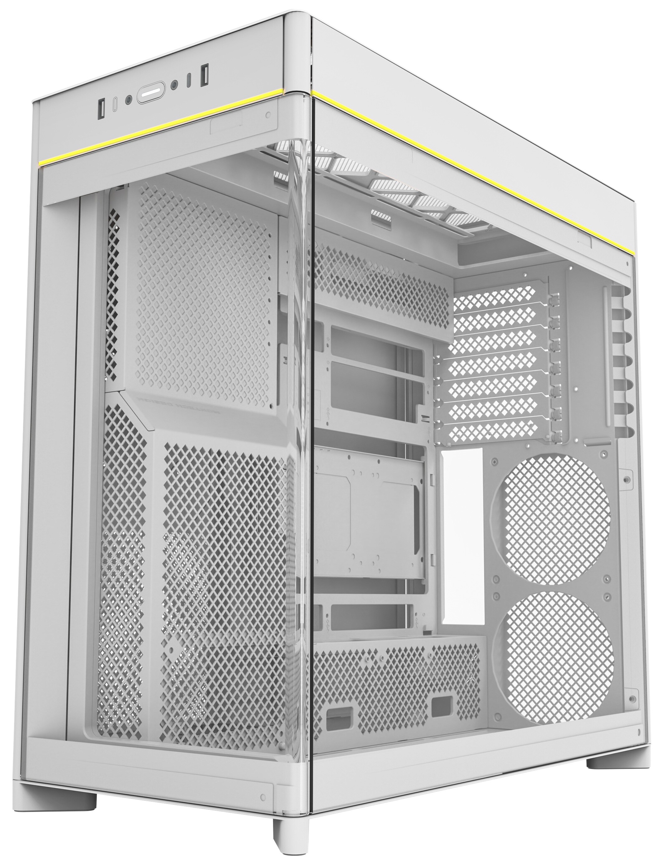 Изогнутая на 8° стеклянная передняя панель обеспечивает минимальное визуальное прерывание, обеспечивая широкий панорамный обзор, демонстрирующий вашу сборку с повышенной четкостью и стилем.