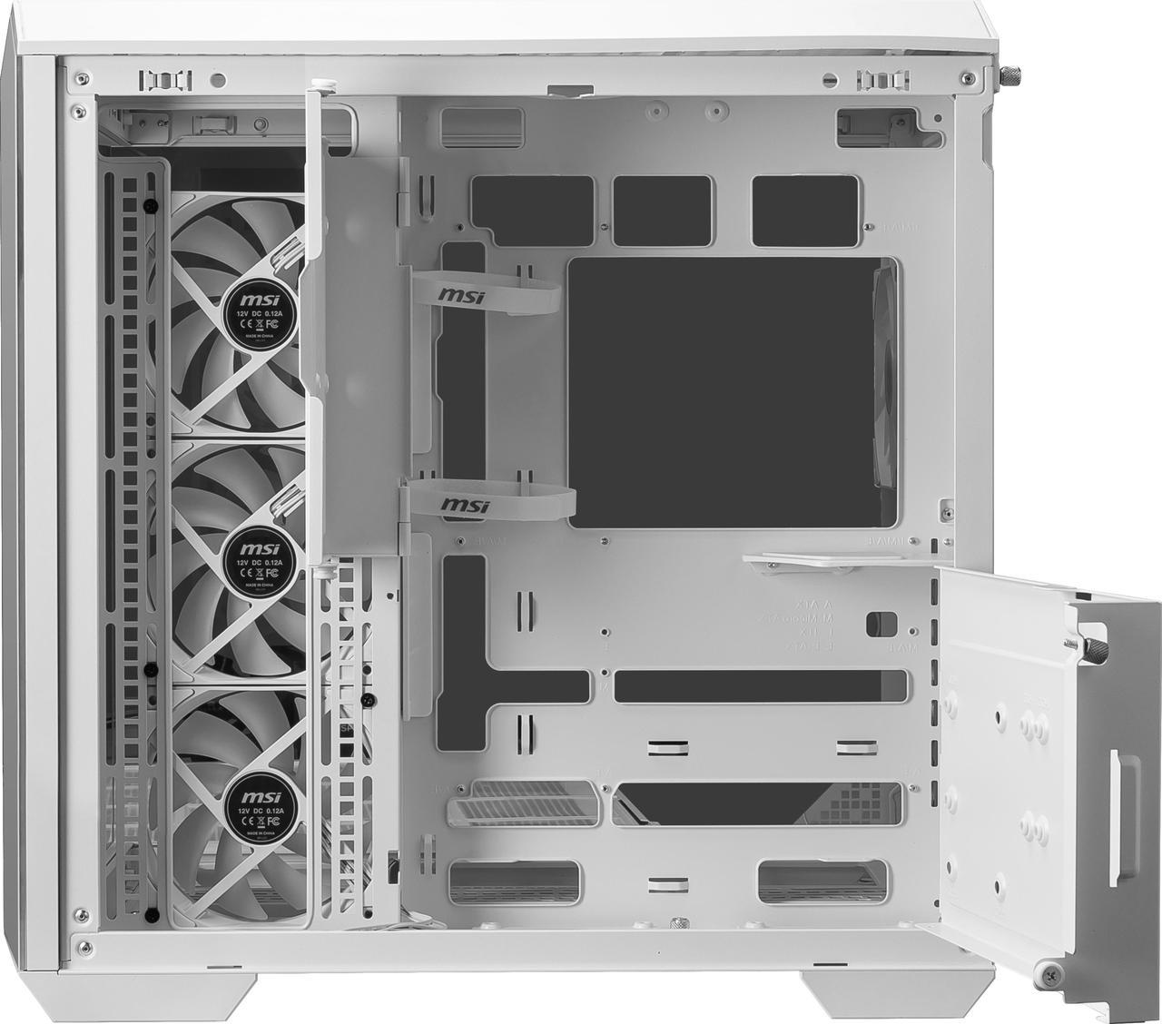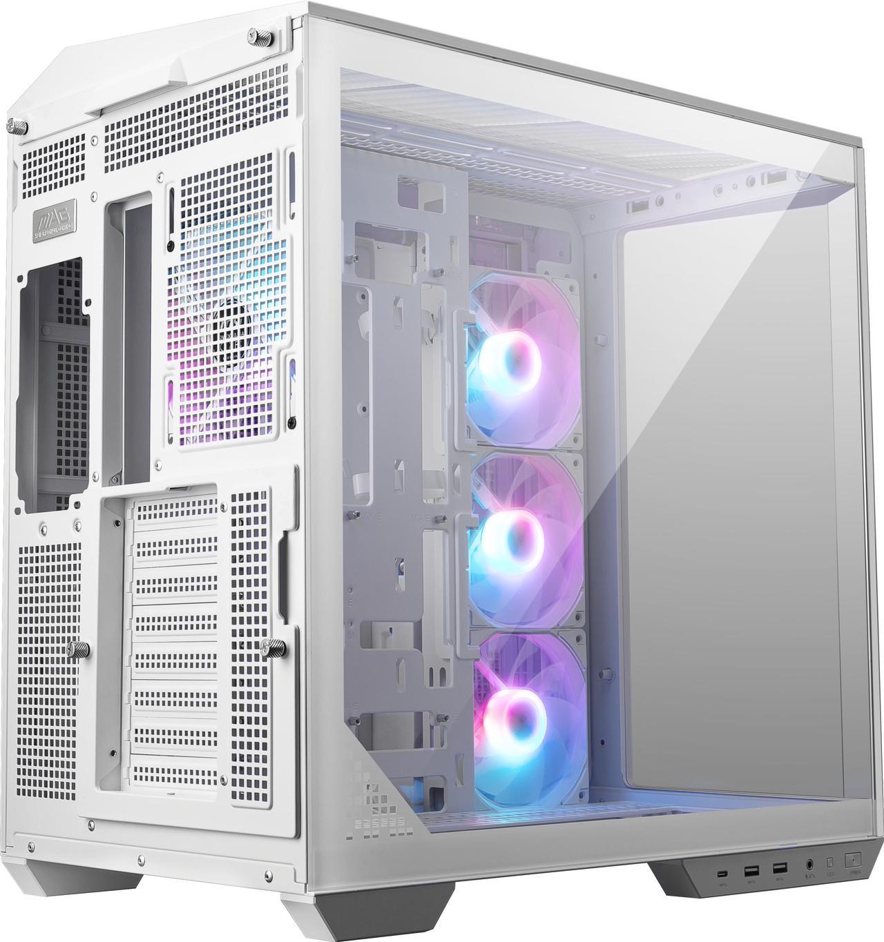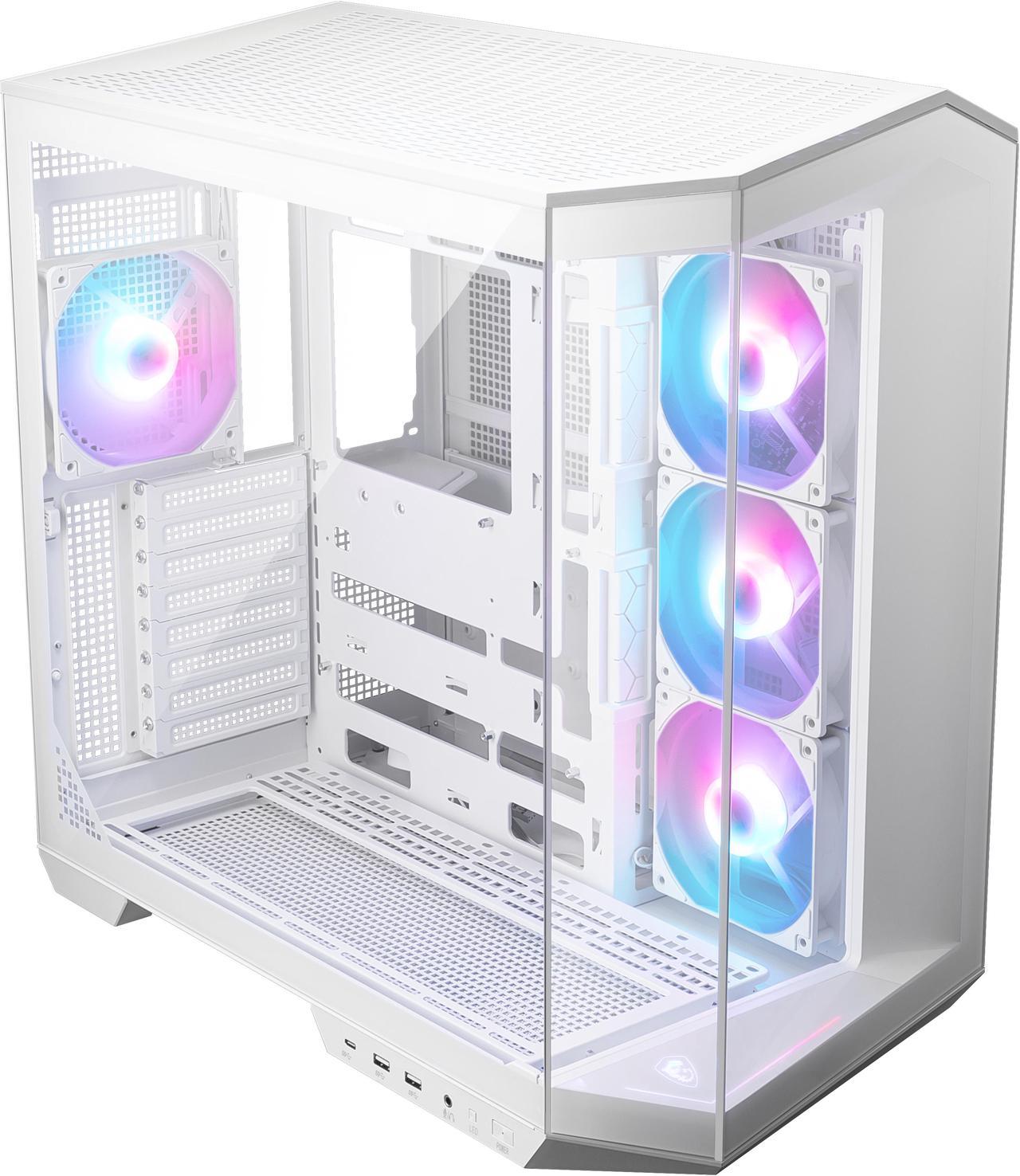 Компьютерный корпус MSI MAG Pano 100R PZ WHITE, Mid Tower, ATX, 2xUSB 3.2 Gen 1, 1xUSB 3.2 Gen2 Type-C, 3x120мм ARGb Reverse Blade Fan, 1x120мм ARGb Fan, ARGb+PWM Control Board,Tempered Glass Window, Brown Box