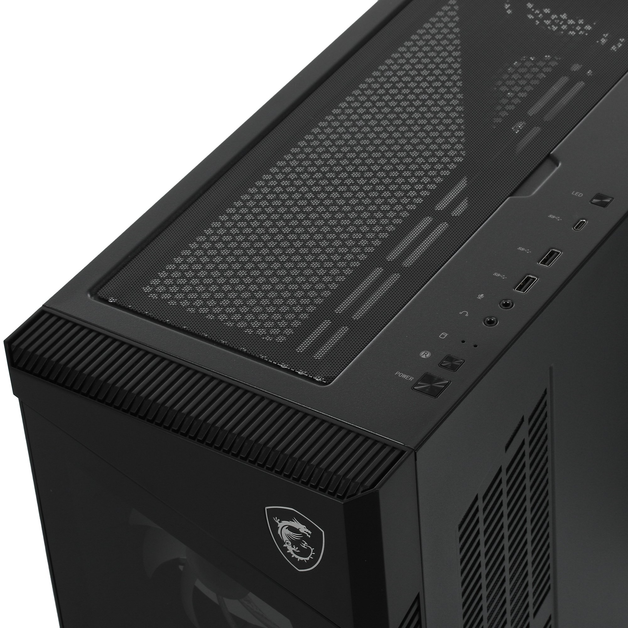 Корпус MSI MPG VELOX 100R [306-7G18R21-809] можно назвать «броней», которая создана для сборки мощной игровой системы. Передняя панель является вентилируемой, хотя и сделана из пластика и стекла. Технологически это решение служит для поддержания оптимальной температуры внутри.
