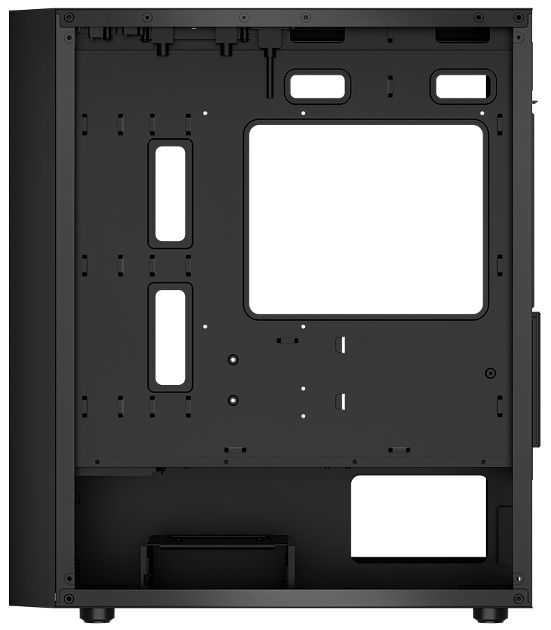 В корпусе PCCooler C3B310 BK можно разместить видеокарту длиной до 340 мм, блок питания форм-фактора ATX (до 170 мм) и процессорный кулер высотой не более 160 мм. Для 2.5" накопителей предусмотрен один отсек, а для 3.5" жестких дисков имеется два отсека. На фронтальную панель корпуса можно установить два 140-миллиметровых или три 120-миллиметровых вентилятора. Имеется возможность установки системы жидкостного охлаждения.