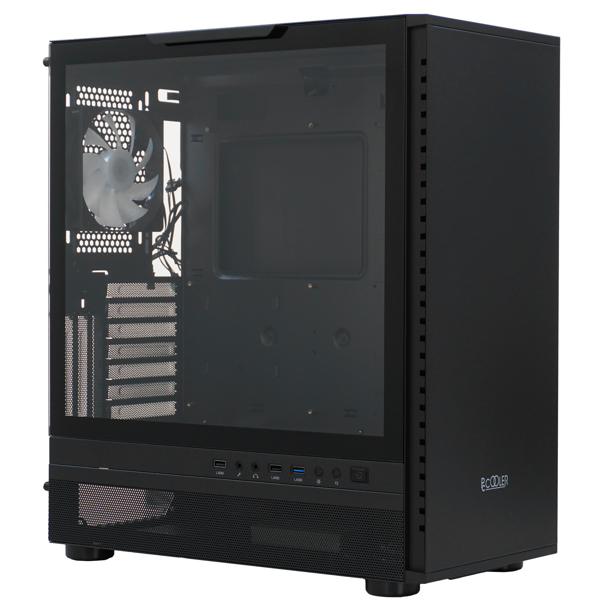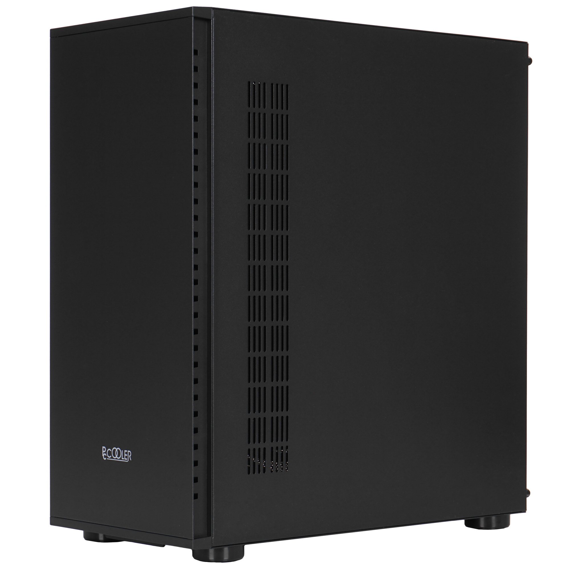 Корпус PCCooler IE200 BK [C3-A500BKG1-GL] окрашен в черный цвет и снабжен прозрачным окном большой площади из закаленного стекла в боковой панели. Рассчитанный на постройку игровой машины модуль поставляется без предустановленного блока питания. Он вмещает видеокарту или другую плату расширения длиной до 380 мм, кулер для охлаждения центрального процессора высотой не более 180 мм. Материнская плата в этой модели монтируется в вертикальном положении.