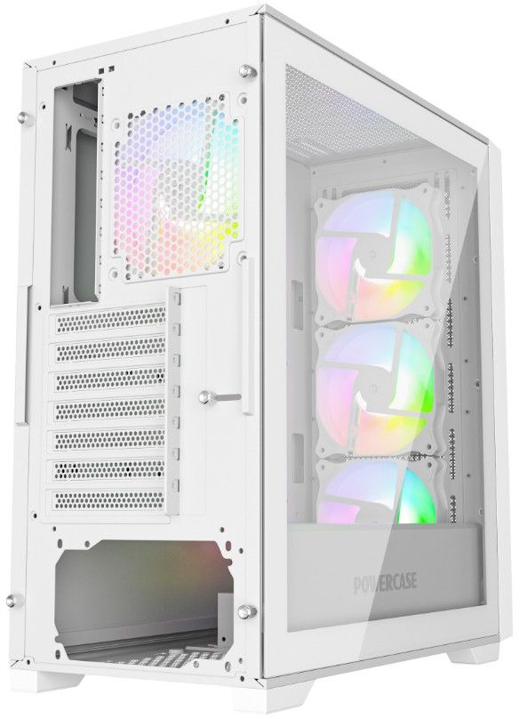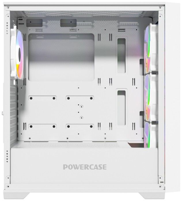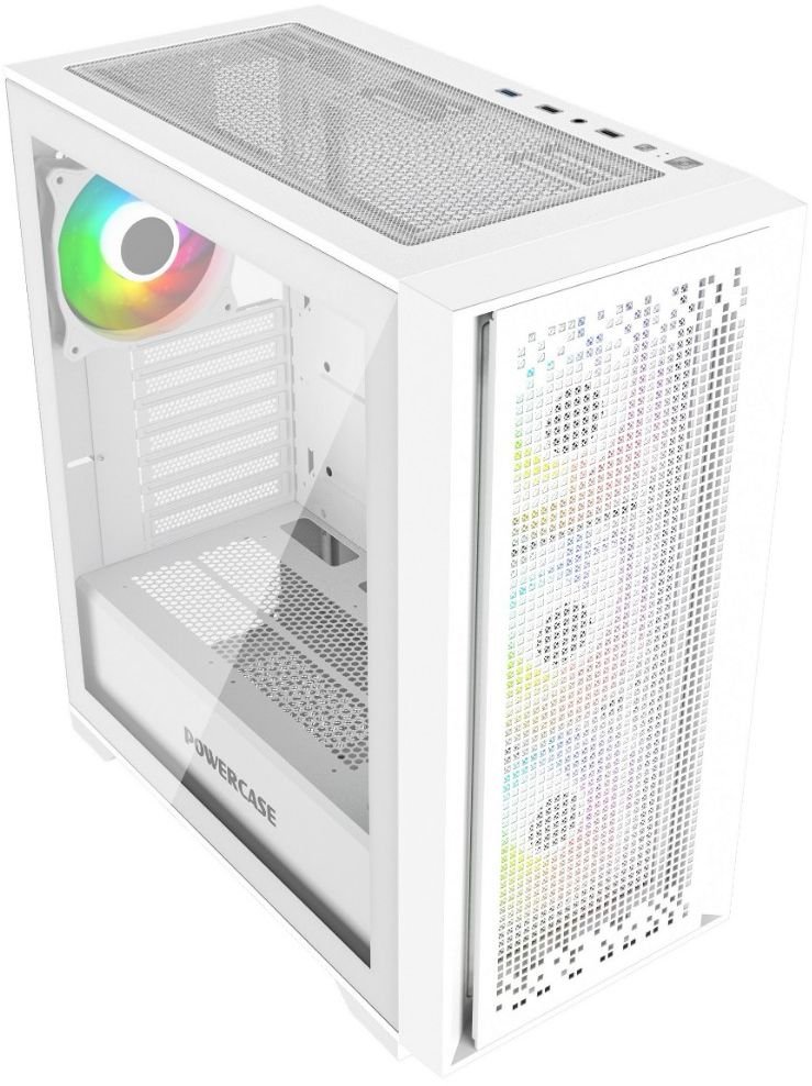 Белый корпус PowerCase ByteFlow [CBFW-A4] типоразмера Mid-Tower рассчитан на сборку игрового или универсального компьютера для дома или офиса. Модель совместима с материнскими платами 3 форм-факторов – Micro-ATX, Mini-ITX и Standard-ATX. Максимально допустимая длина видеокарты составляет 330 мм. Высота кулера процессора ограничена 168 мм.