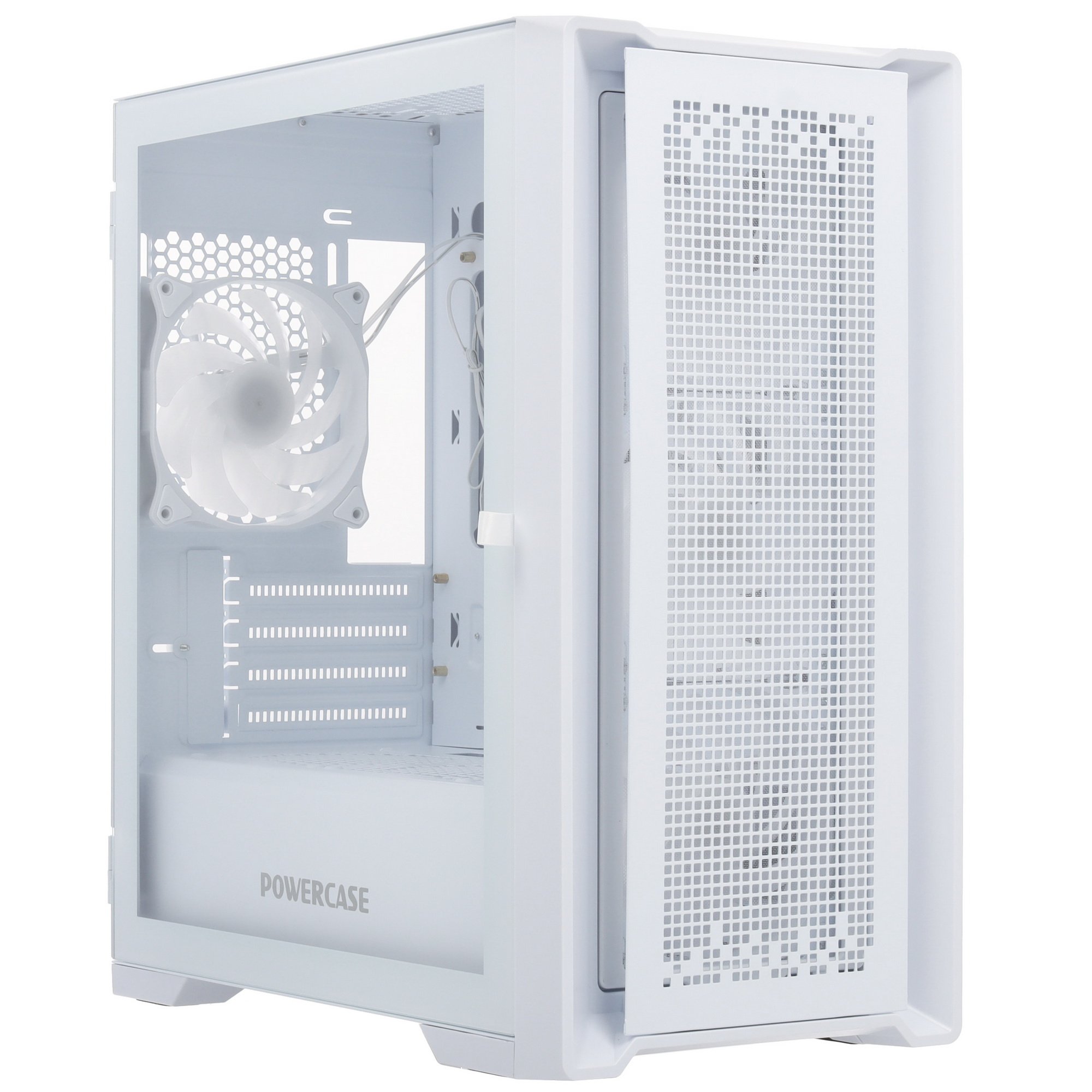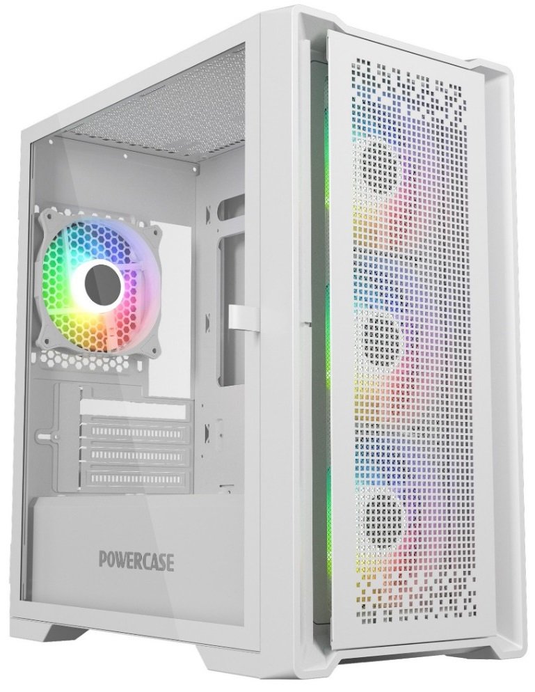 Компьютерный корпус Powercase ByteFlow Micro White, Tempered Glass, 4х 120мм ARGb fans, ARGb HUB, белый, mATX (CAMBFW-A4)