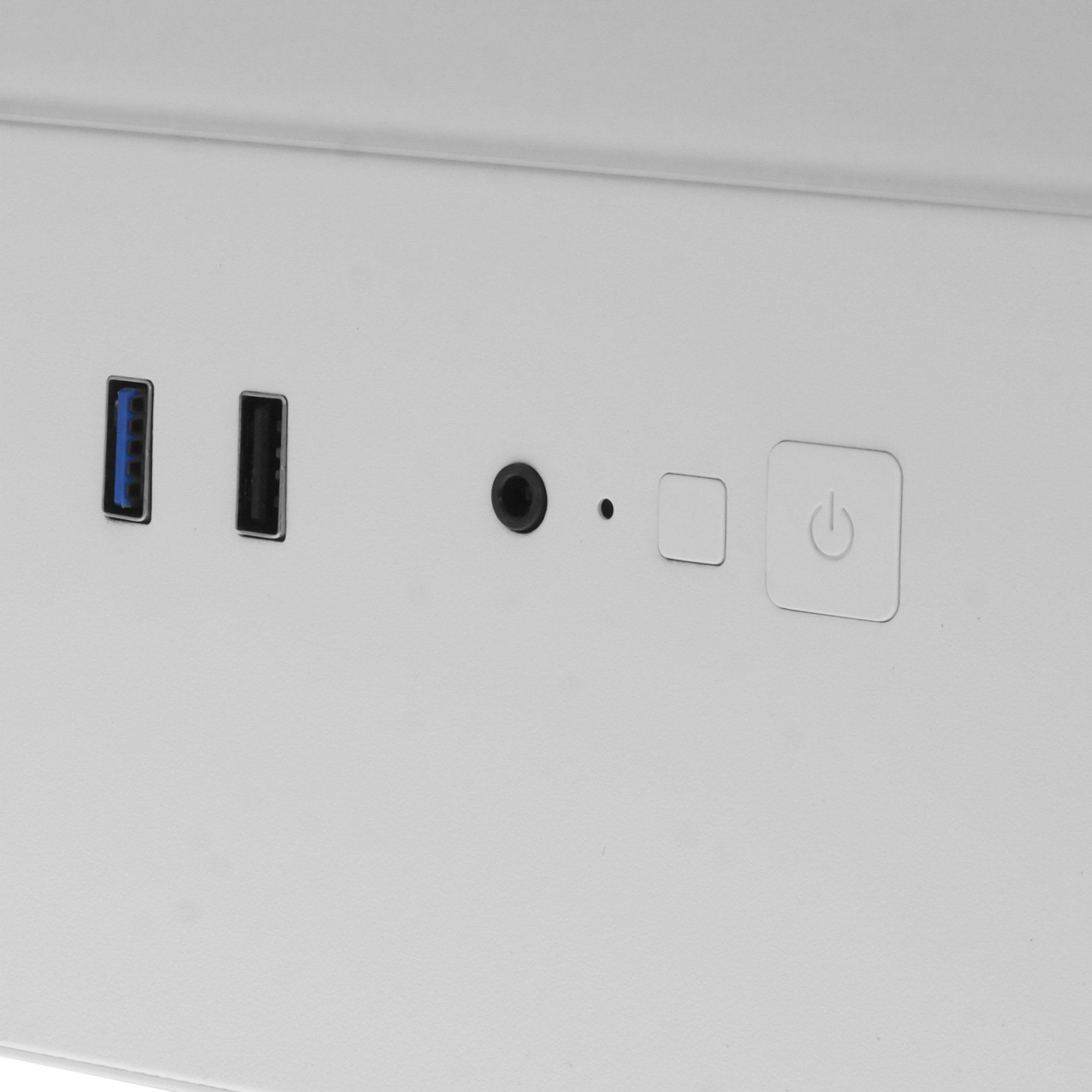 Корпус Powercase Vision Micro M3W белого цвета в форм-факторе Mini-Tower подходит для сборки ПК на платформах Micro-ATX, Mini-ITX. Модель идет с 3 вентиляторами для быстрого отвода тепла. На корпусе-аквариуме устройства есть USB 3.1, USB 2.0, аудио разъемы и кнопки управления. Возможна прокладка кабелей за задней стенкой. С помощью многоцветной ARGB-подсветки можно создавать разные визуальные эффекты.