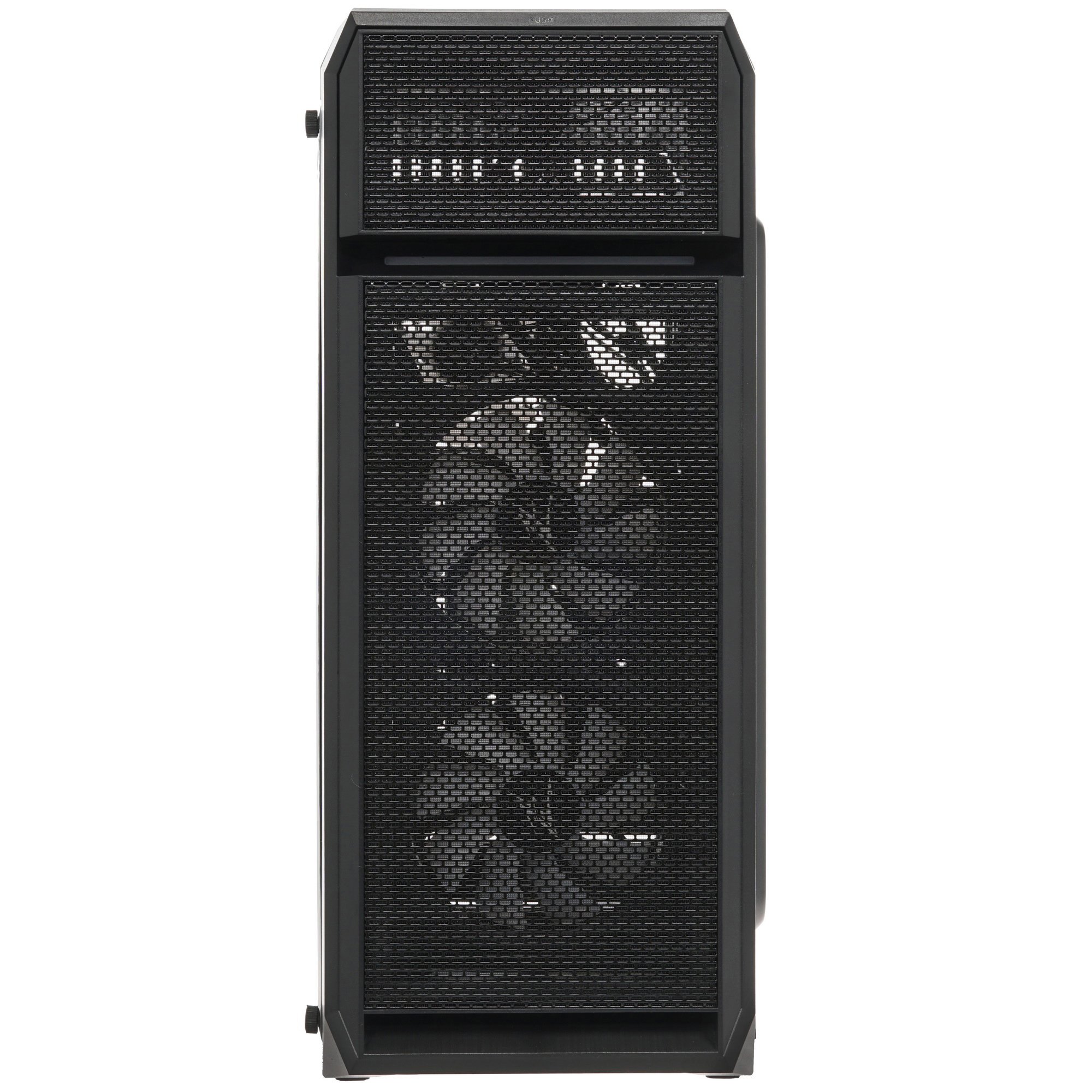 Корпус ZALMAN N5 OF обращает на себя внимание оригинальной конструкцией передней панели и обилием перфорированных элементов. Боковую стенку занимает окно из устойчивого к внешним воздействиям оргстекла. Модель имеет эффектную белую подсветку. Цвет корпуса традиционный – черный.