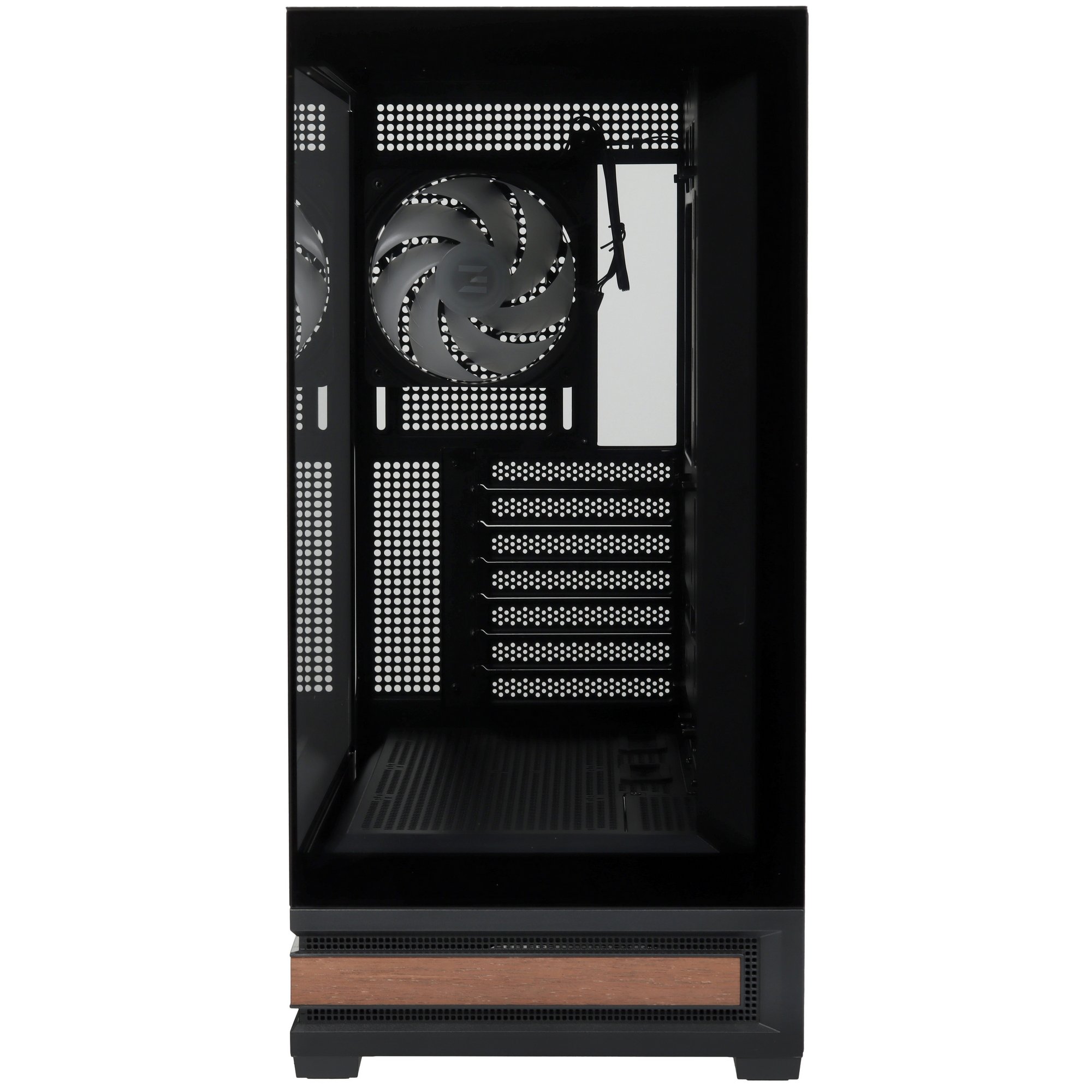 Корпус ZALMAN P40 NAMU подходит для сборки игрового компьютера. Дизайн в виде аквариума с прозрачными панелями из закаленного стекла открывает панорамный обзор на элементы ПК. Есть пылевой фильтр для меньшего загрязнения компонентов ПК, зазоры в корпусе для прокладки кабелей за задней стенкой, вырез для кулера. Модель дополнена программируемой ARGB-подсветкой вентилятора с управлением через ПО материнской платы, отдельной кнопки и комплектного контроллера.