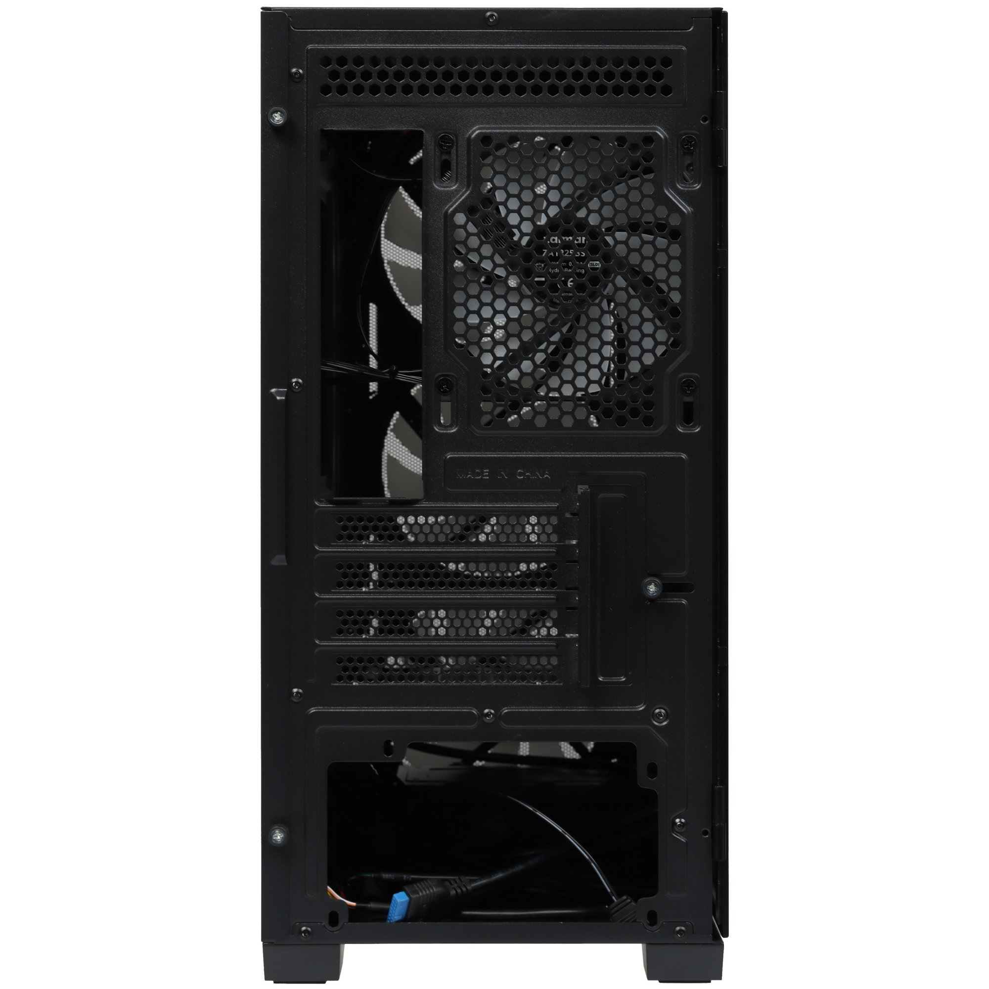 Корпус ZALMAN M4 черного цвета представлен в формате Mini-Tower и позволяет собрать игровой ПК. Металлическая сетка установлена на его фронтальной панели, основание которой выполнено из пластика. Передняя панель переходит плавно в боковую. Левая панель сделана из закаленного стекла и позволяет видеть содержимое корпуса. Она фиксируется на петли для удобного доступа к комплектующим.