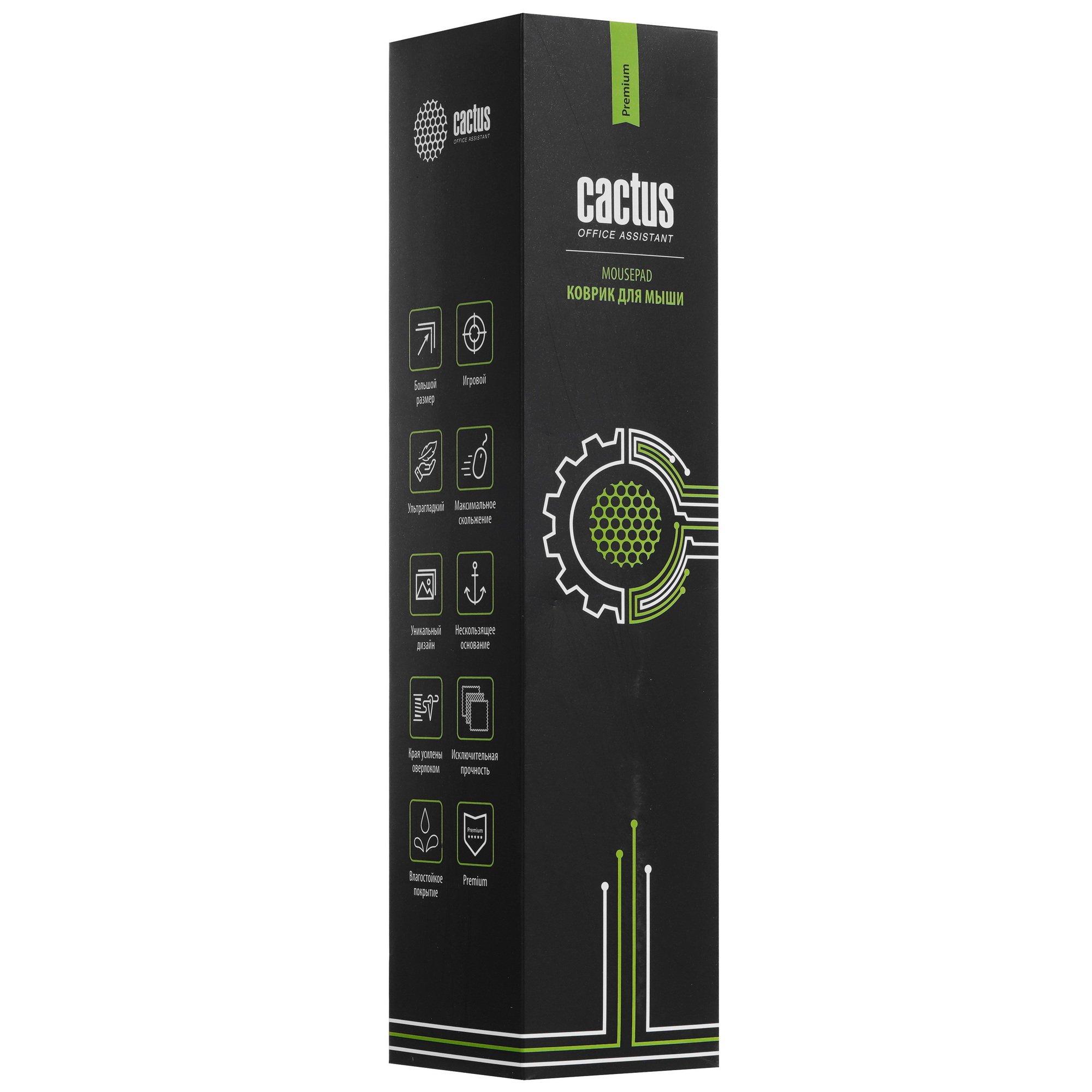 Лицевая сторона примечательна разноцветным рисунком с персонажем акулы. Прошитые края повышают устойчивость к износу и повреждениям. Резиновое основание гарантирует прочное сцепление с поверхностью, фиксирует коврик Cactus Shark (2XL) на столе и предотвращает его смещение при интенсивных движениях манипулятора.