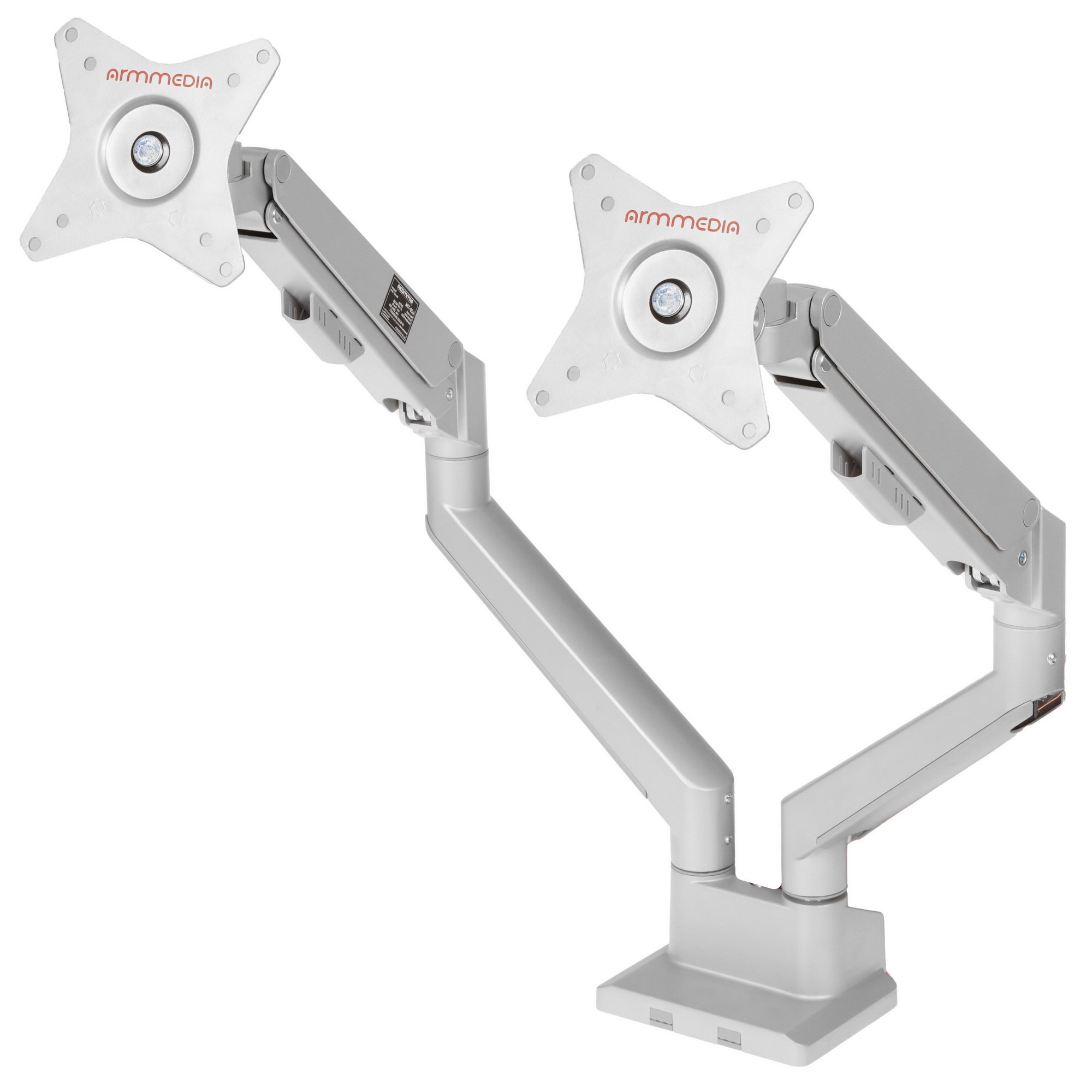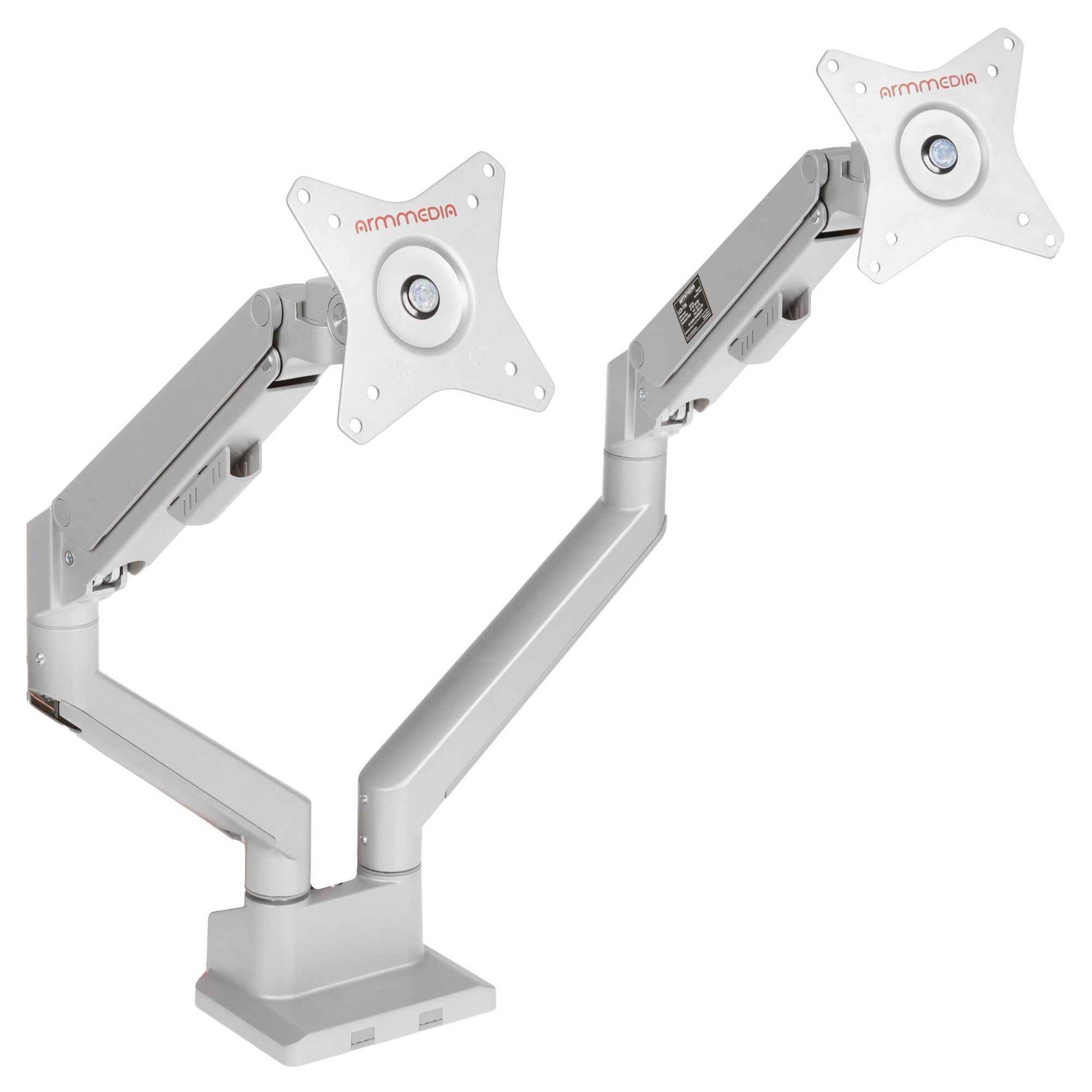 Кронштейн Arm media LCD-T36 серебристый, 4 шт/уп. Кр. алюм. настол. для 2-х мон. 15"-34", max 2х9 кг, нак. ±45°, пов. ±180°, от стола 495 мм, max VESA 100x100 мм.