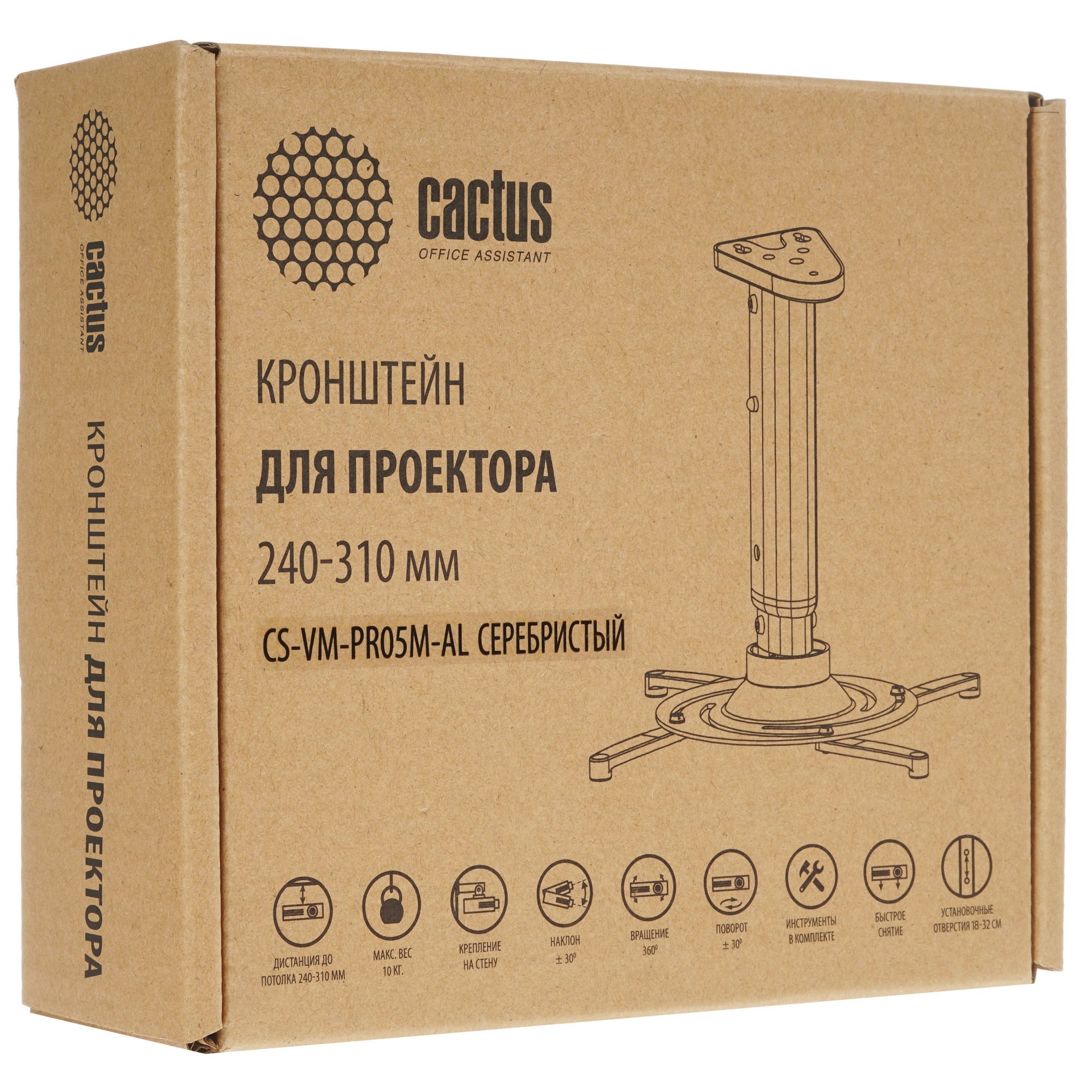 Кронштейн для проектора Cactus CS-VM-PR05M-AL серебристый макс.10кг настенный и потолочный поворот и наклон