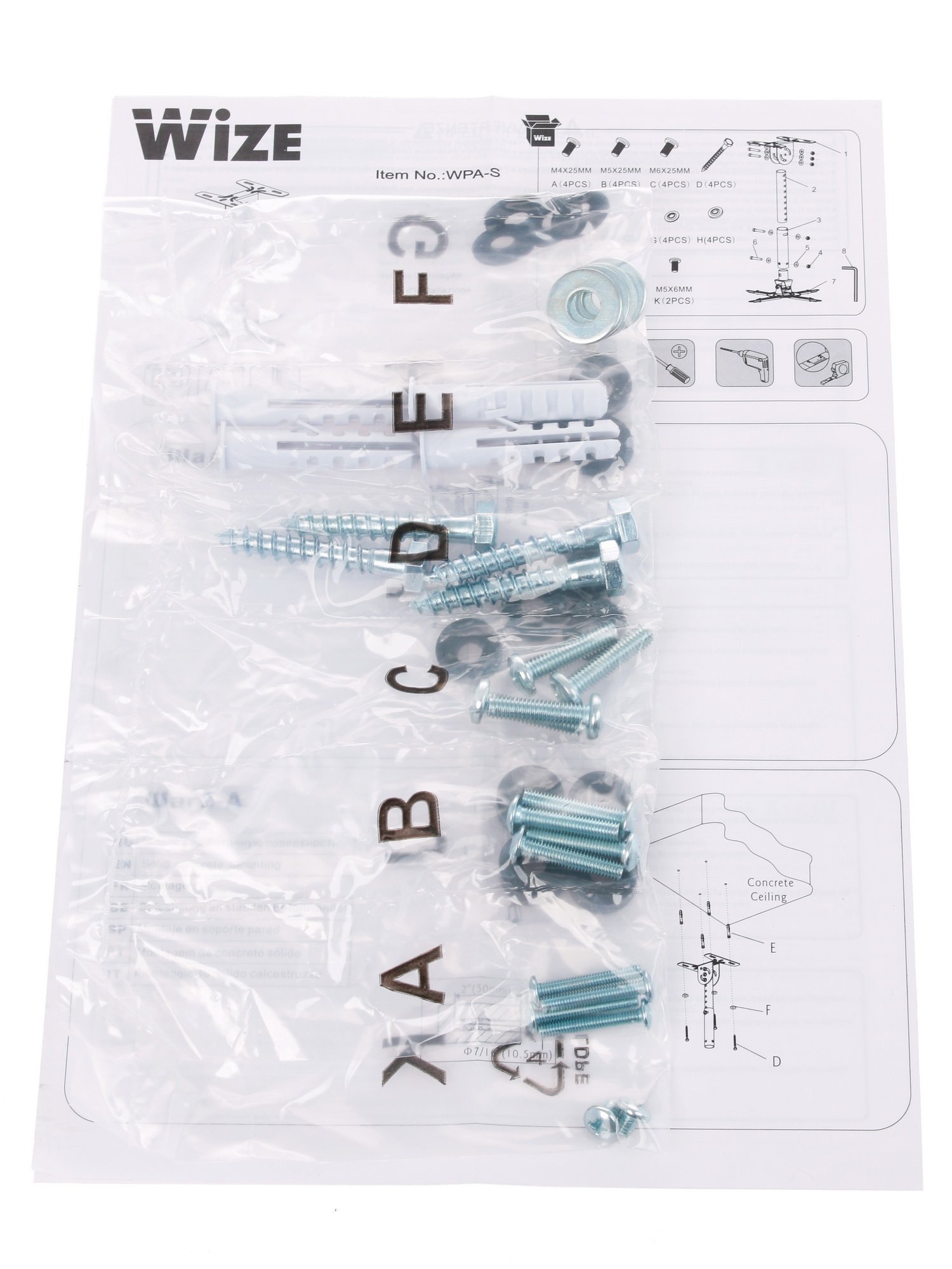 Крепеж Wize WPA-S серебро Универсальное комплект для проектора, длина штанги 36-46 см, наклон +/- 15°, поворот +/- 15°, до 12 кг, 260х260