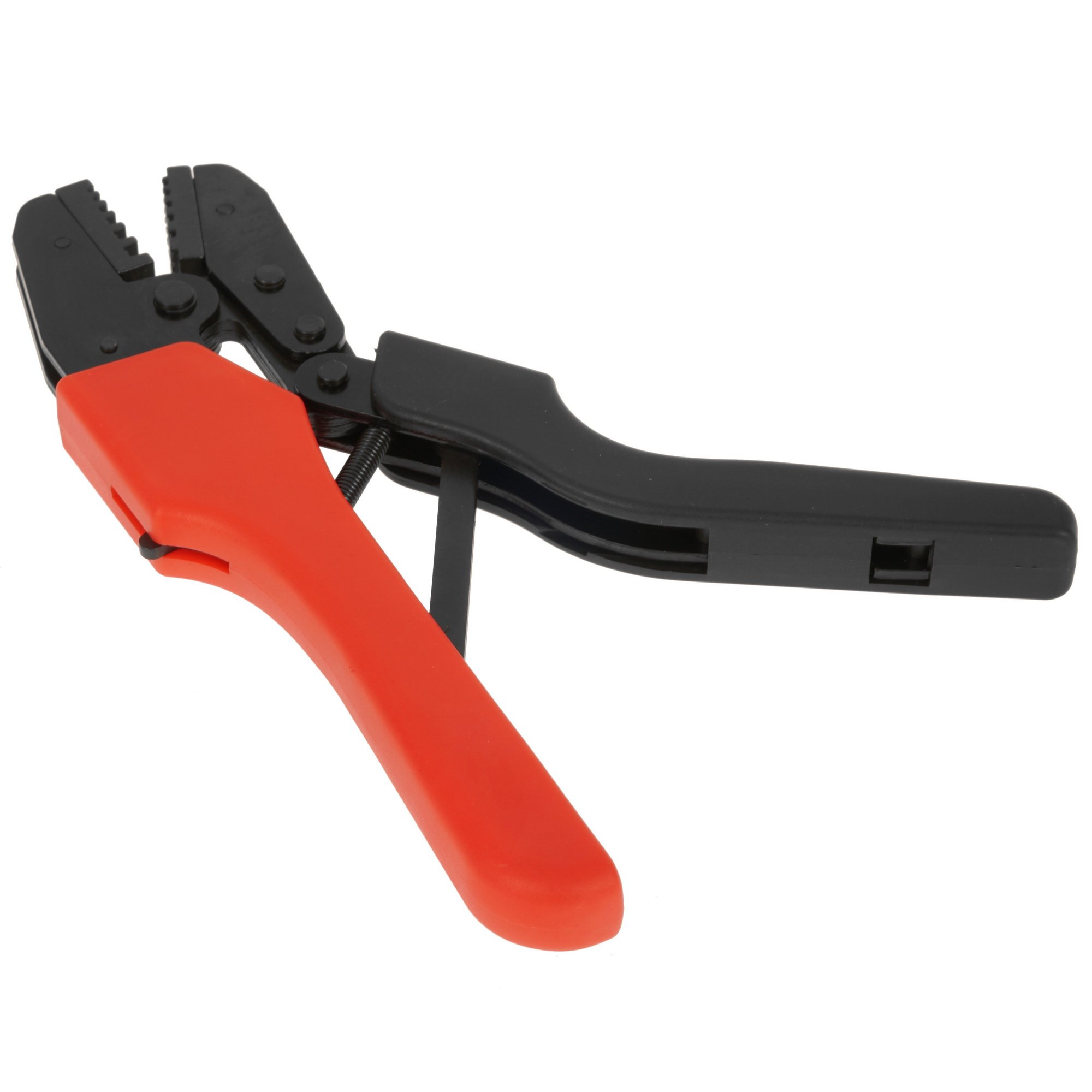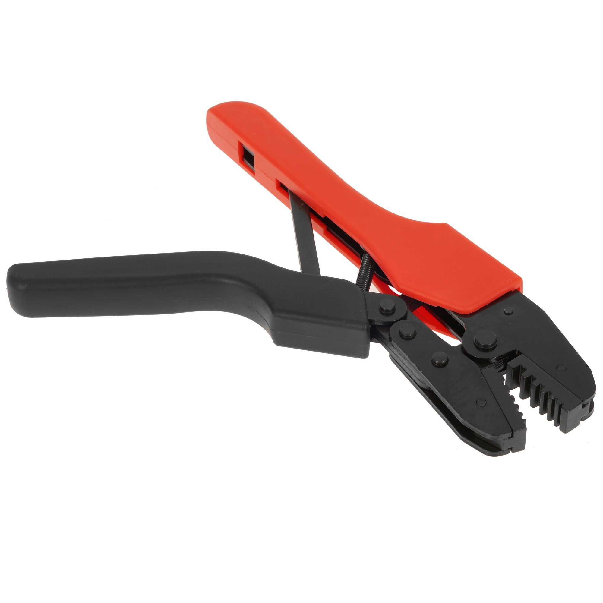 Пресс-клещи КВТ CTK-02 56539 являются ручным инструментом, который позволяет выполнять обжим изолированных наконечников с сечением в пределах 0.25-6 мм². Рабочая часть изготовлена из качественной стали со специальным защитным покрытием, предотвращающим появление коррозии. В конструкции инструмента применяется храповой механизм, который обеспечивает блокировку обратного хода до момента завершения цикла опрессовки. Благодаря пластиковым рукояткам эргономичной формы обеспечивается комфортное удержание клещей КВТ CTK-02 56539.