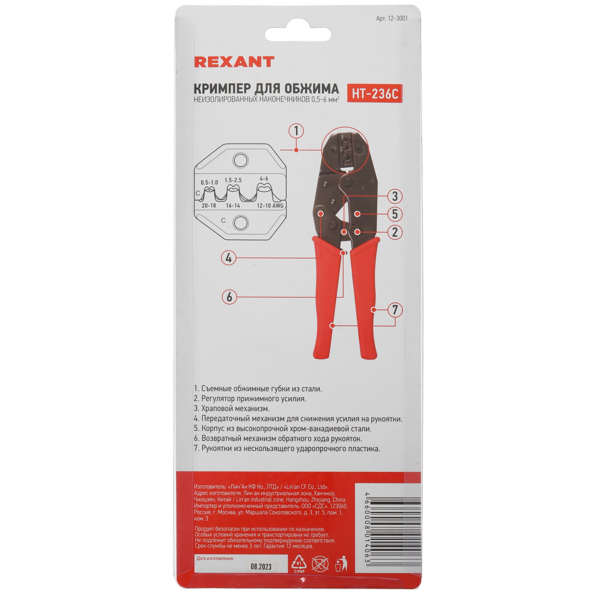 Инструменты Rexant HT-230С (12-3001) Кримпер для обжима неизолированных клемм 0.5 - 6.0 мм (TL-236C) (HT-236C)