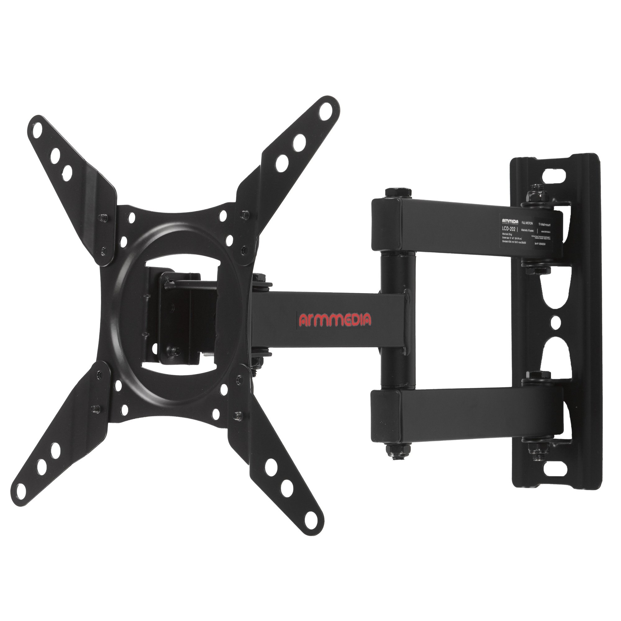 Кронштейн для ТВ ARM MEDIA LCD-202 предусматривает настройку положения просмотра за счет регулировки угла наклона вперед/назад и поворота до 180°. Он предназначен для использования с телевизорами диагональю экрана от 15 до 43 дюймов. Съемная монтажная пластина делает удобным процесс установки.