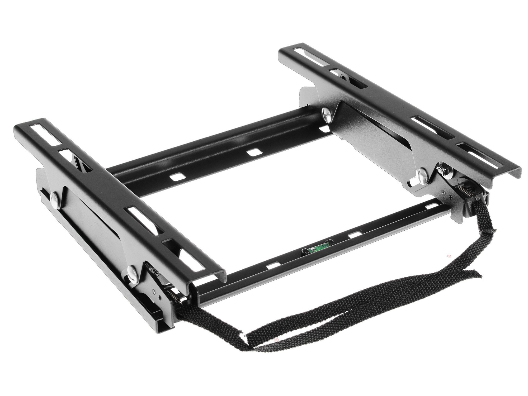 Крепление для ТВ и мониторов Holder LCD-T2609-B необходимо для настенной установки техники с диагональю экрана 19–50 дюймов. Максимальный разрешенный вес устанавливаемой техники составляет 40 килограмм. Кронштейн из высокопрочной стали позволяет установить телевизор (монитор) на расстоянии 60 мм от стены с возможностью ручной регулировки угла наклона вверх и вниз, без использования дополнительного инструмента. Отверстия для крепежа соответствуют стандарту VESA и имеют размеры: минимум – 100х100 мм, максимум – 200х200 мм.
