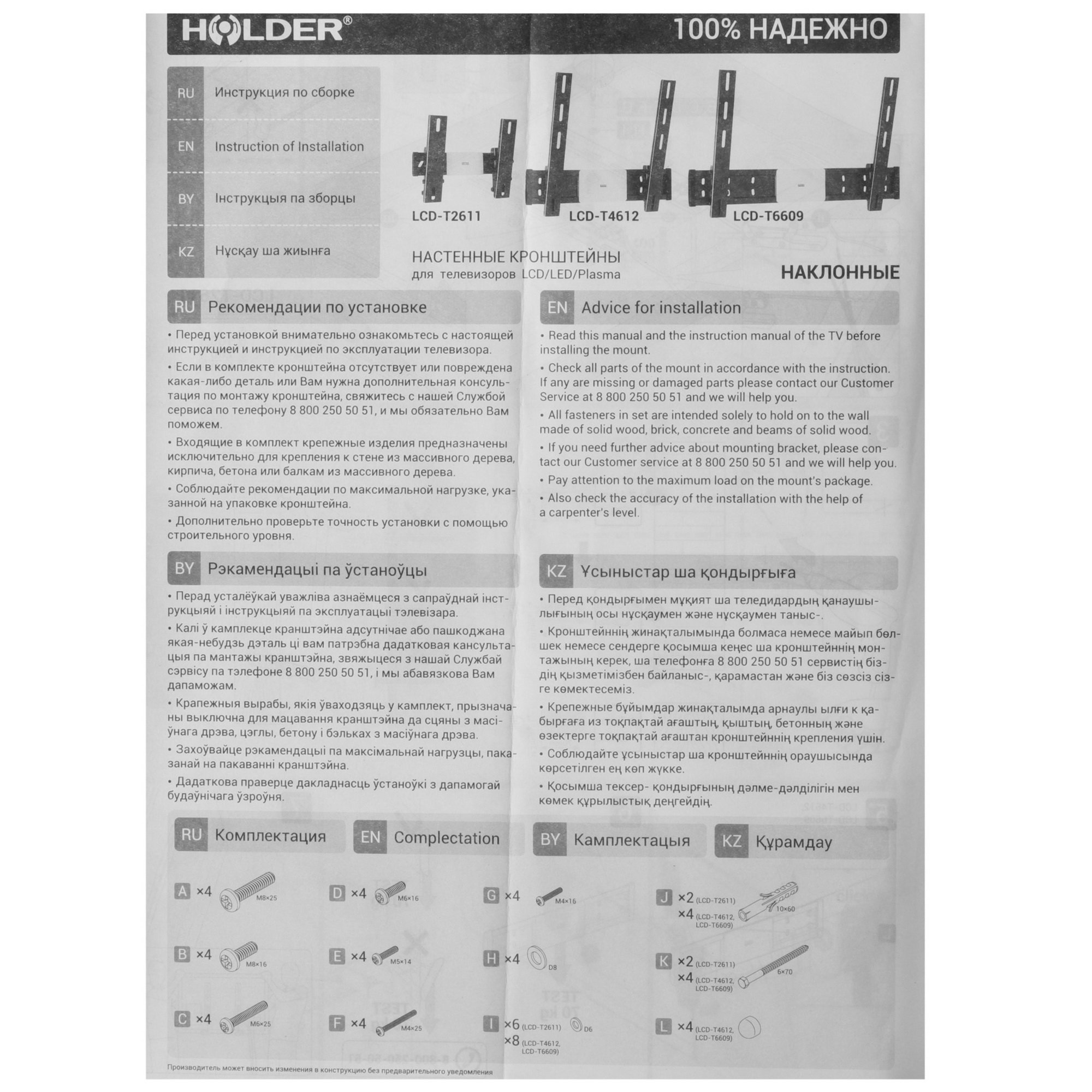 Кронштейн Holder LCD-T4612 плотно фиксируется на поверхности. Он выдерживает нагрузку до 45 кг. Расстояние до стены не меняется и составляет 65 мм. Стальная конструкция с окрашенным покрытием черного цвета гарантирует устойчивость к деформации и механическим воздействиям.