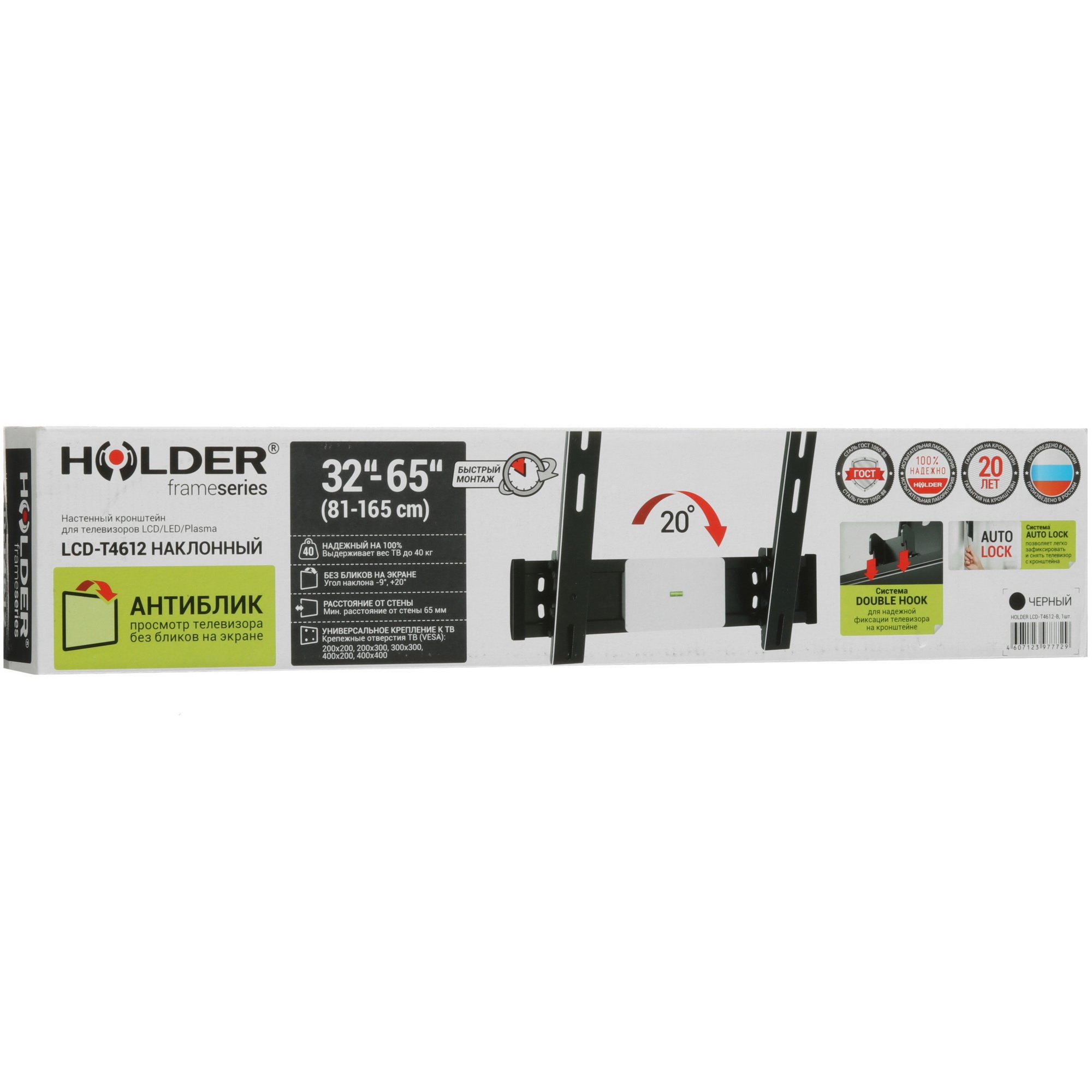 Кронштейн для телевизора Holder LCD-T4612 черный 32"-65" макс.40кг настенный наклон