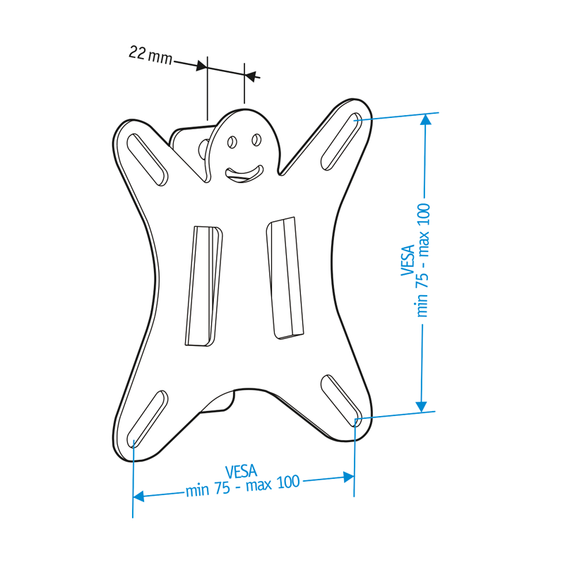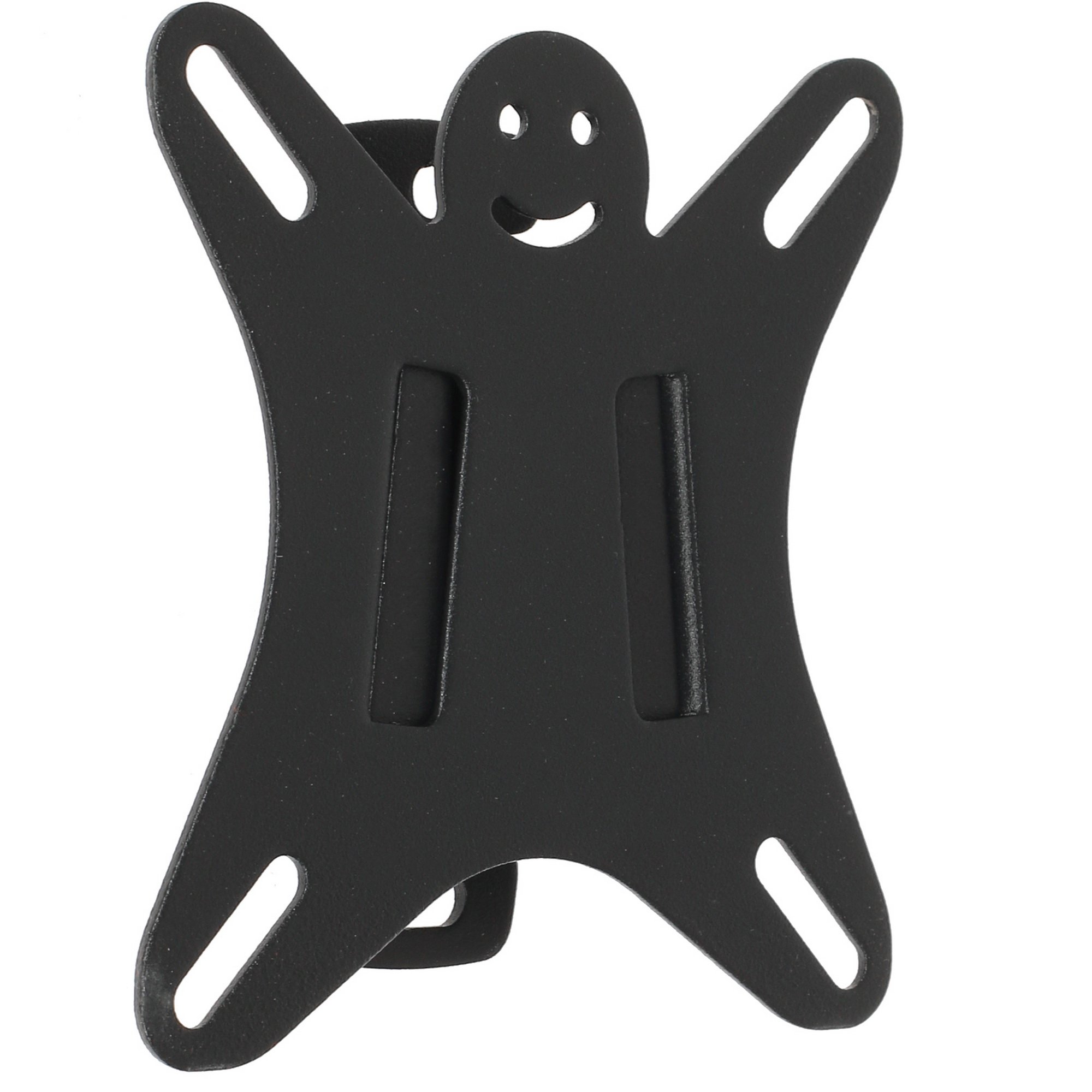 Черный кронштейн для ТВ Holder LCDO-2610 имеет компактную конструкцию, позволяющую разместить на стене телевизор с диагональю экрана 10–32 дюймов. Модель с фиксированным креплением выдерживает максимальную нагрузку до 25 кг. Расстояние от стены до телевизора с использованием кронштейна ТВ Holder LCDO-2610 составляет 2.1 см. Комплектующее рассчитано на взаимодействие с креплениями VESA размером 75x75 и 100x100 мм. Модель не позволяет выполнять наклон и поворот телевизора. Кабель-канала и встроенного уровня в конструкции крепления также не предусмотрено.