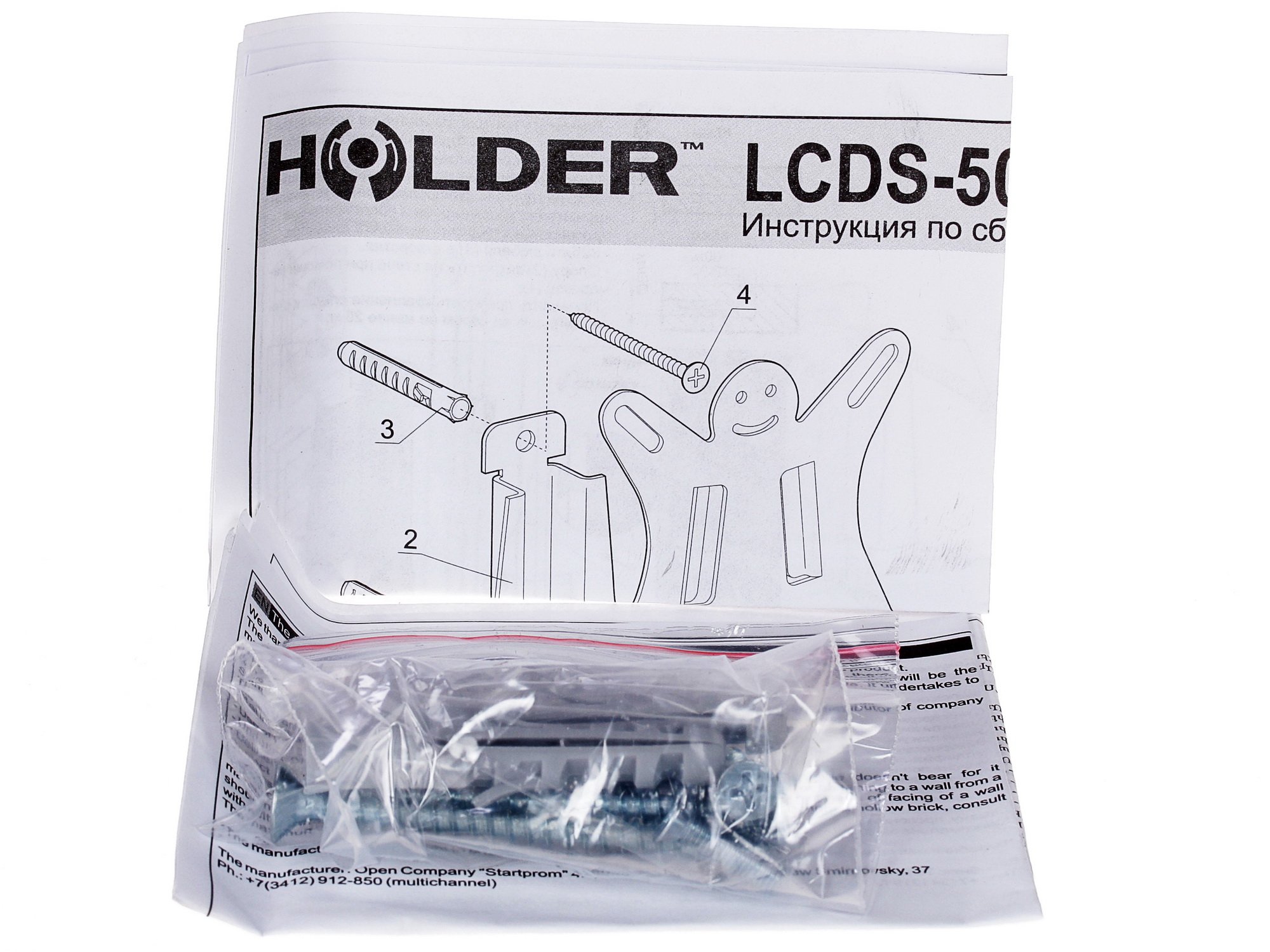 Комплект поставки крепления Holder LCDS-5001 включает подробную инструкцию по сборке, а также дополнительные составляющие для монтажа. Установка кронштейна проста и доступна.