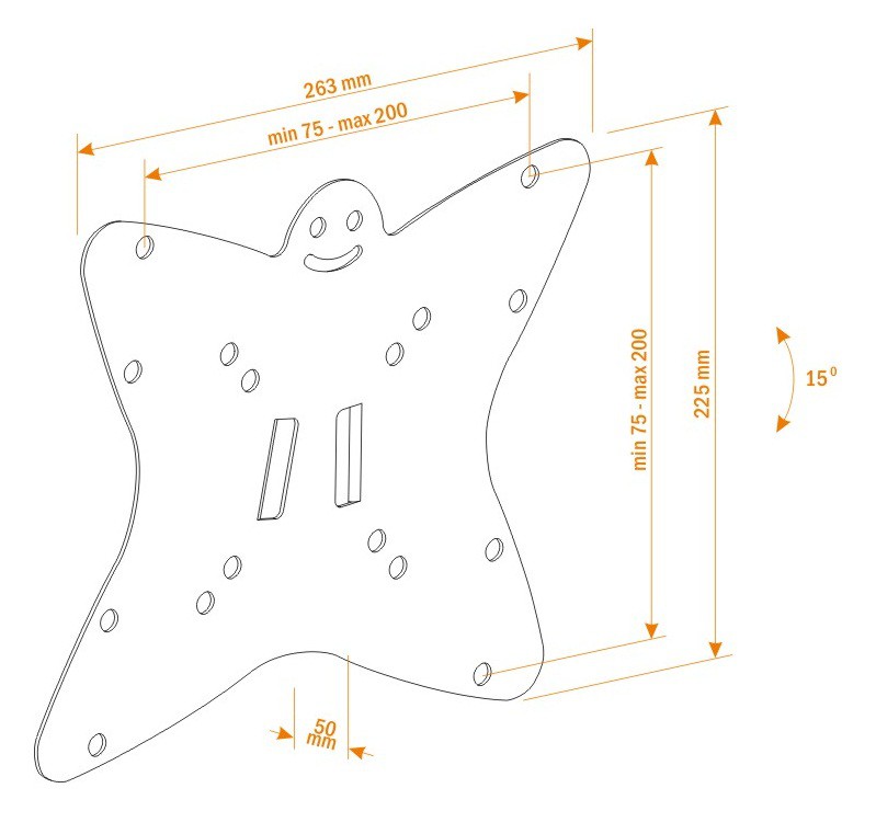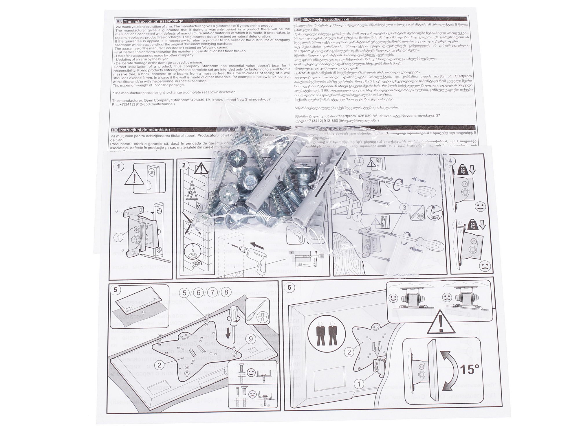 Кронштейн выдерживает любой вес до 30 кг, а диагональ телевизора может составлять от 19 до 50 дюймов. Крепление сделано из металла, который обеспечивает надежность и безопасность.
