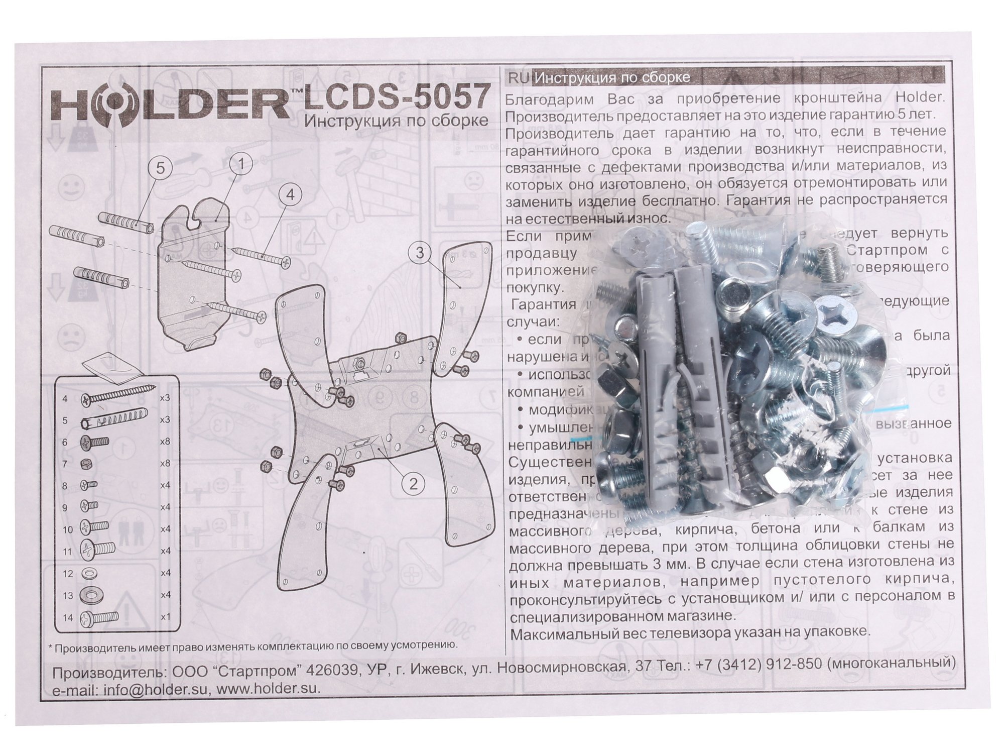 Наклонный кронштейн Holder LCDS-5057 – один из лучших вариантов крепления для ЖК-телевизора с диагональю от 22 до 55 дюймов. Регулировка наклона не поддерживается. Расстояние от работающего устройства до стены составляет 2 см.