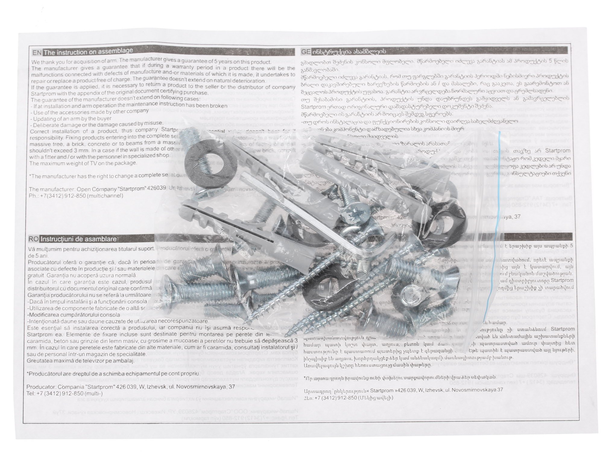Прочная конструкция выдерживает ощутимый вес устройства до 30 кг. Для установки не потребуется приобретать ничего дополнительно – все детали и элементы входят в комплект поставки. Регулировка положения экрана при эксплуатации не требует использования дополнительных инструментов. Даже снять с уже установленного кронштейна LCDS-5065 телевизор и повесить обратно – очень просто благодаря продуманной конструкции. Модель поставляется в черном глянцевом оформлении.