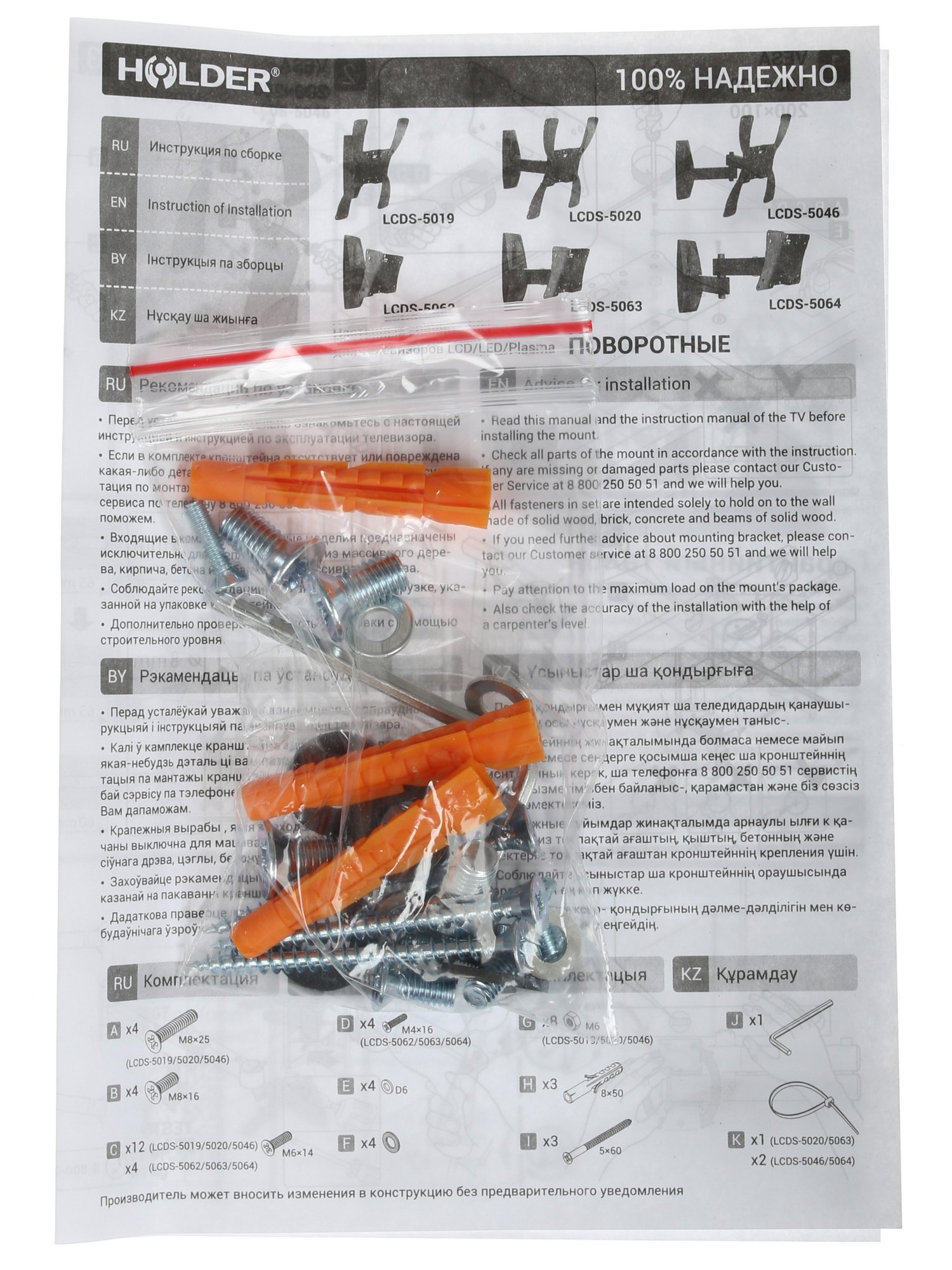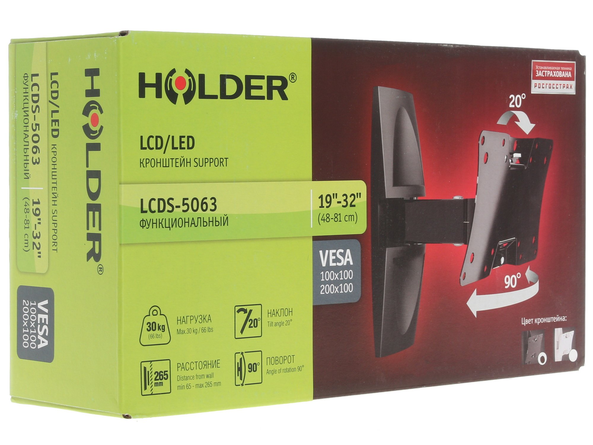Прочная металлическая конструкция выдерживает нагрузку от телевизора весом до 30 кг. Черный глянцевый цвет позволяет использовать модель Holder LCDS-5063, не скрывая ее. Благодаря привлекательному внешнему виду кронштейн с легкостью станет частью вашего интерьера.